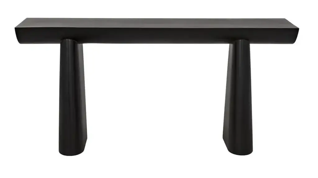 This pared down design is the essence of simplicity. Our Winston console table in black finished metal, updates the ancient form of the altar table, making this bold, zen-like form a subtle and versatile piece for any room.