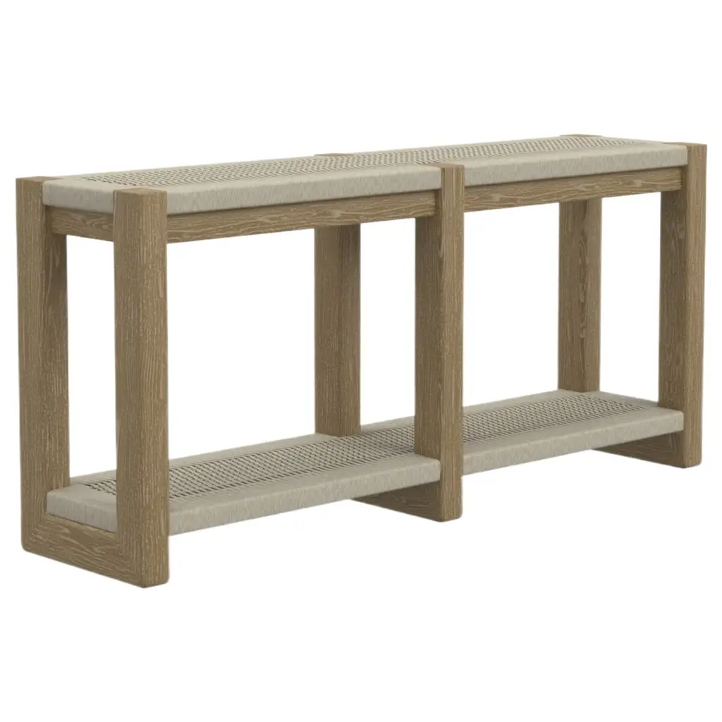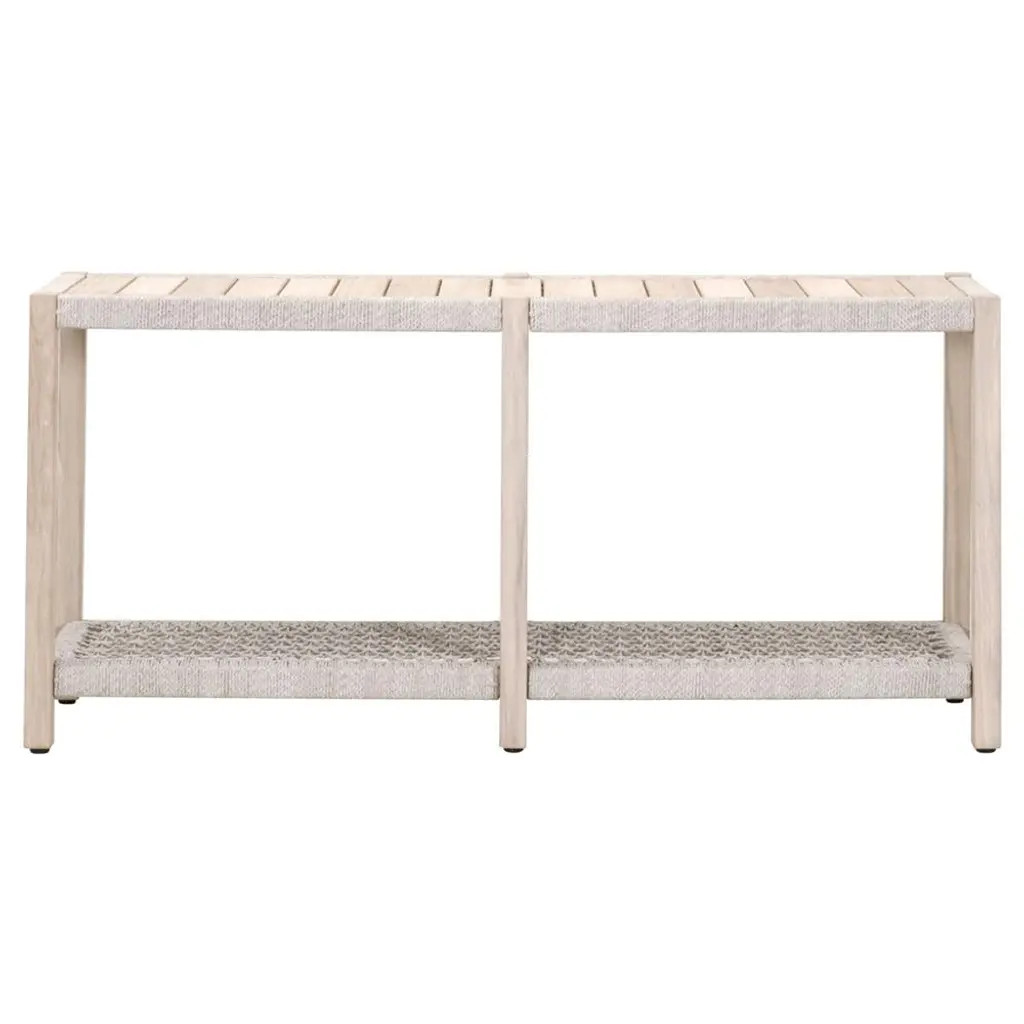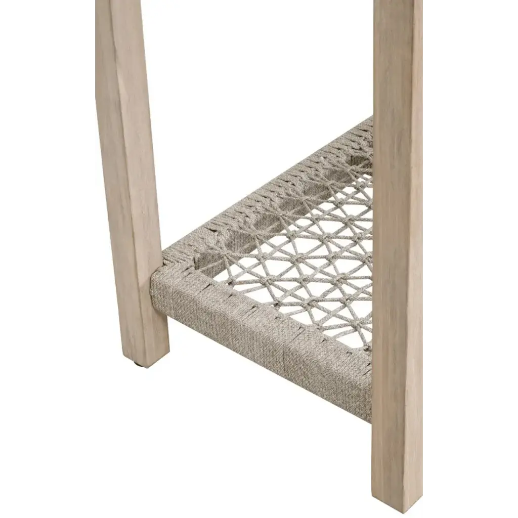 Wrap Outdoor Console Table Taupe & White Flat Rope, Gray Teak