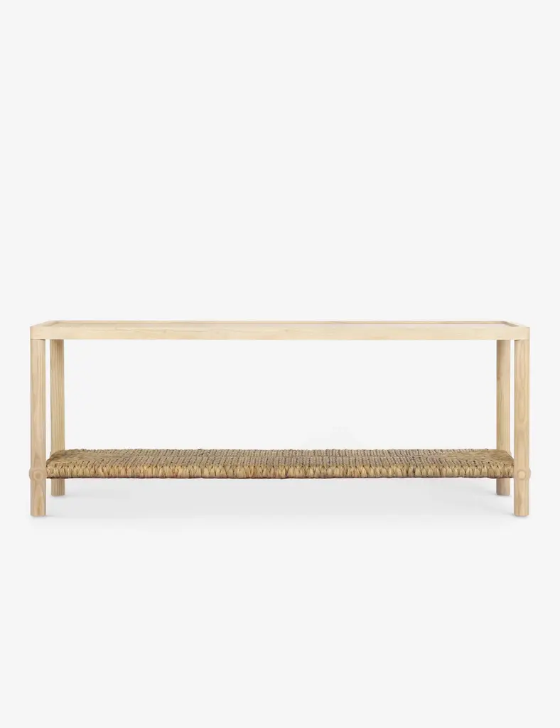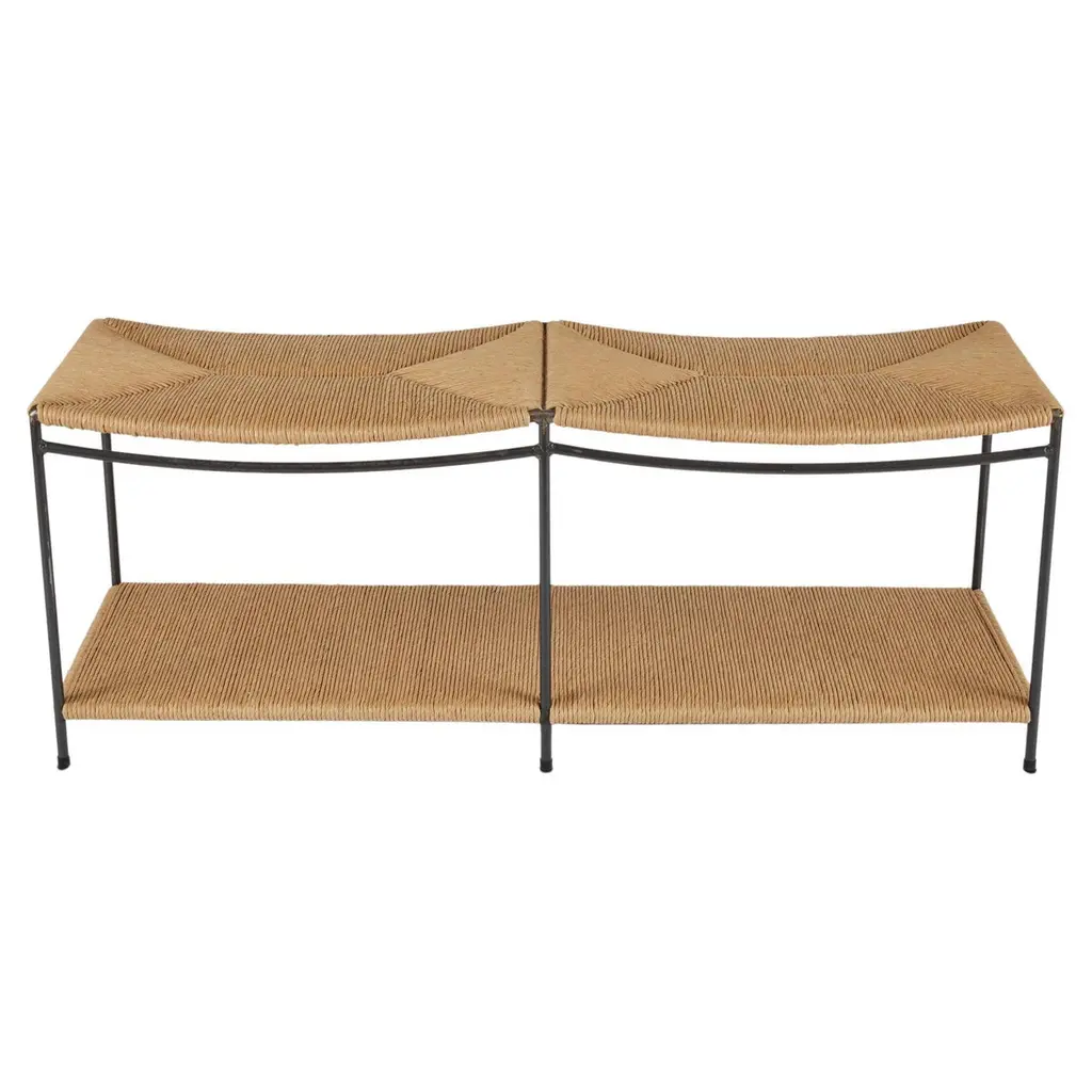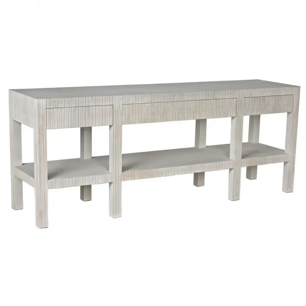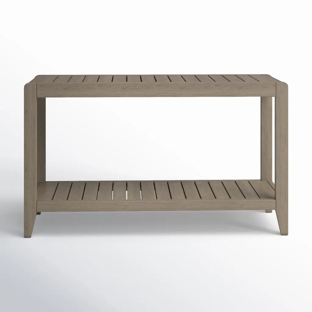 Wrap Outdoor Console Table Taupe & White Flat Rope, Gray Teak