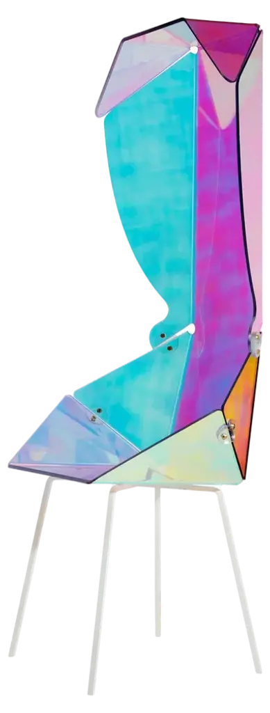XX is a console realized in transparent pink and orange coloured glass. The base, composed of two Xs in tempered and laminated mm. 8+8 thick glass, with special chamfering and gluing, is embellished by metal polished chrome elements. The top, in laminated 8+8 mm thick glass, leans on the base.