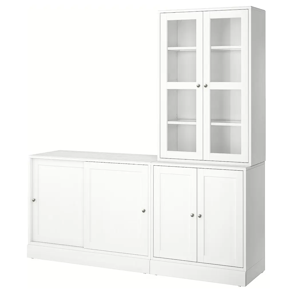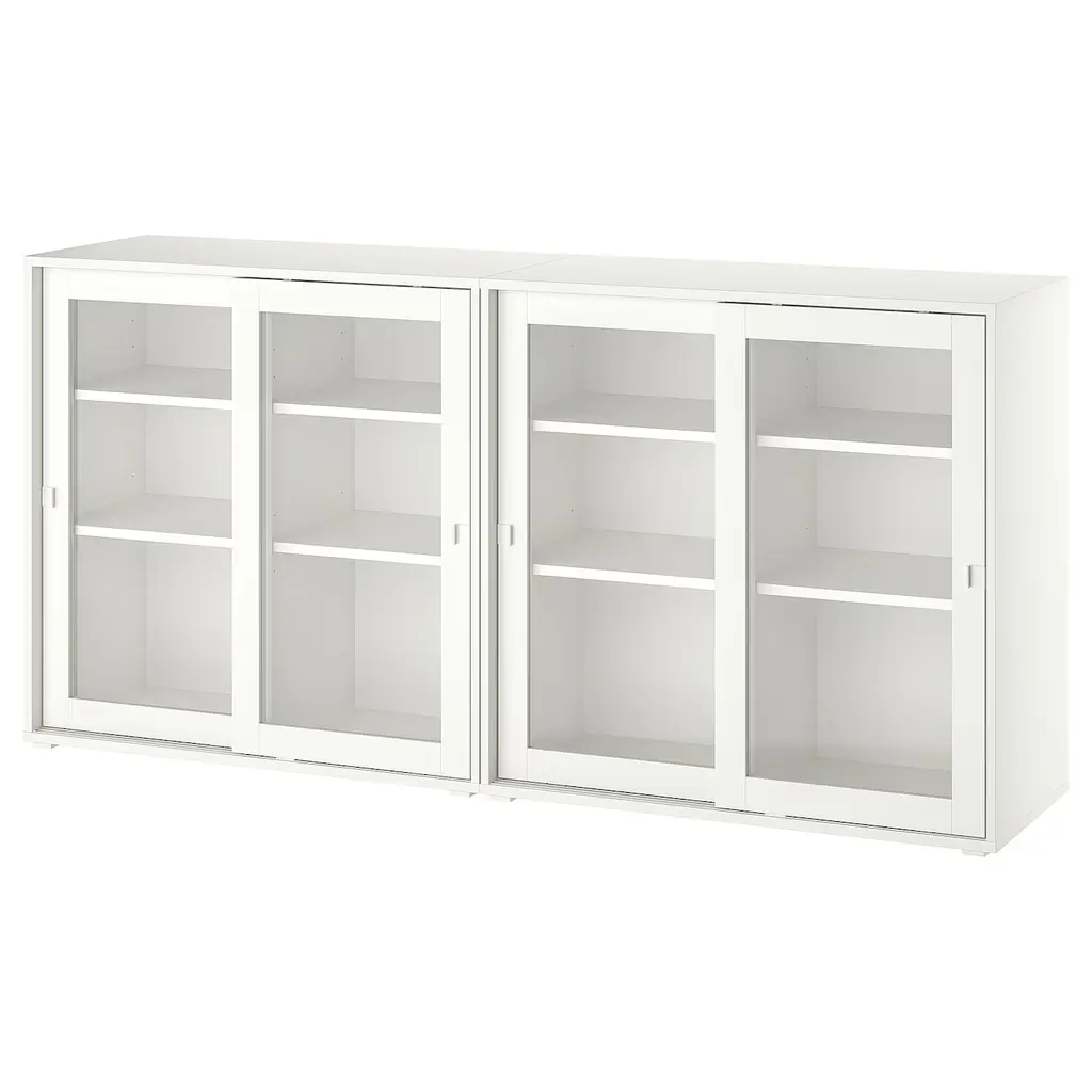 BESTÅ Storage combination with doors - white/Sutterviken/Kabbarp white clear glass 70 7/8x16 1/2x44 7/8 ". You can choose to use either the soft-closing or push-open function. Glass doors keep your finest items free from dust but still visible. Knobs and handles are sold separately.