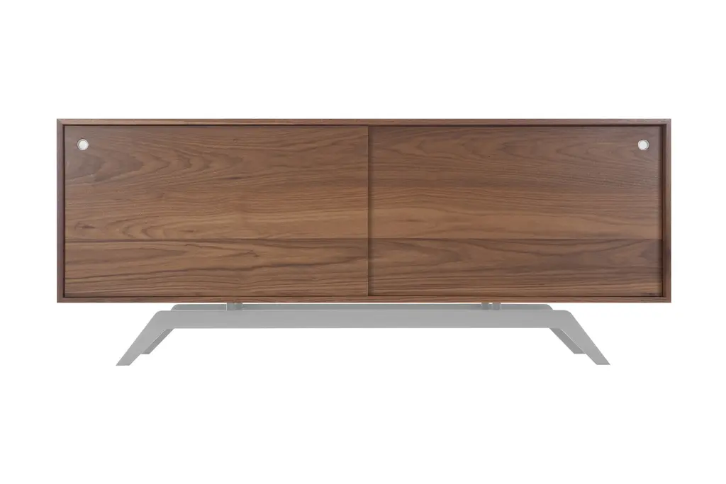 Inspired by classic mid-century design, the Elko Credenza’s colorful metal base was born out of the new millenium. Eighteen custom combinations let you develop this instant show piece for the home, office or studio that has your own personal stamp on it. The sleek, laser cut, steel base is powder coated in one of six vibrant color options, all playing perfectly to the three wood surfaces of your choosing. Handcrafted out of locally sourced, solid wood, the mitered joints reinforce while allowing a matching wood grain to wrap the entire piece. All with a durable non-toxic finish. And behind all the exterior style, dual, smooth-sliding doors reveal the adjustable shelves and wire passages that make it a simple and accommodating space for all of your storage needs - wired or not. Made in Minnesota.