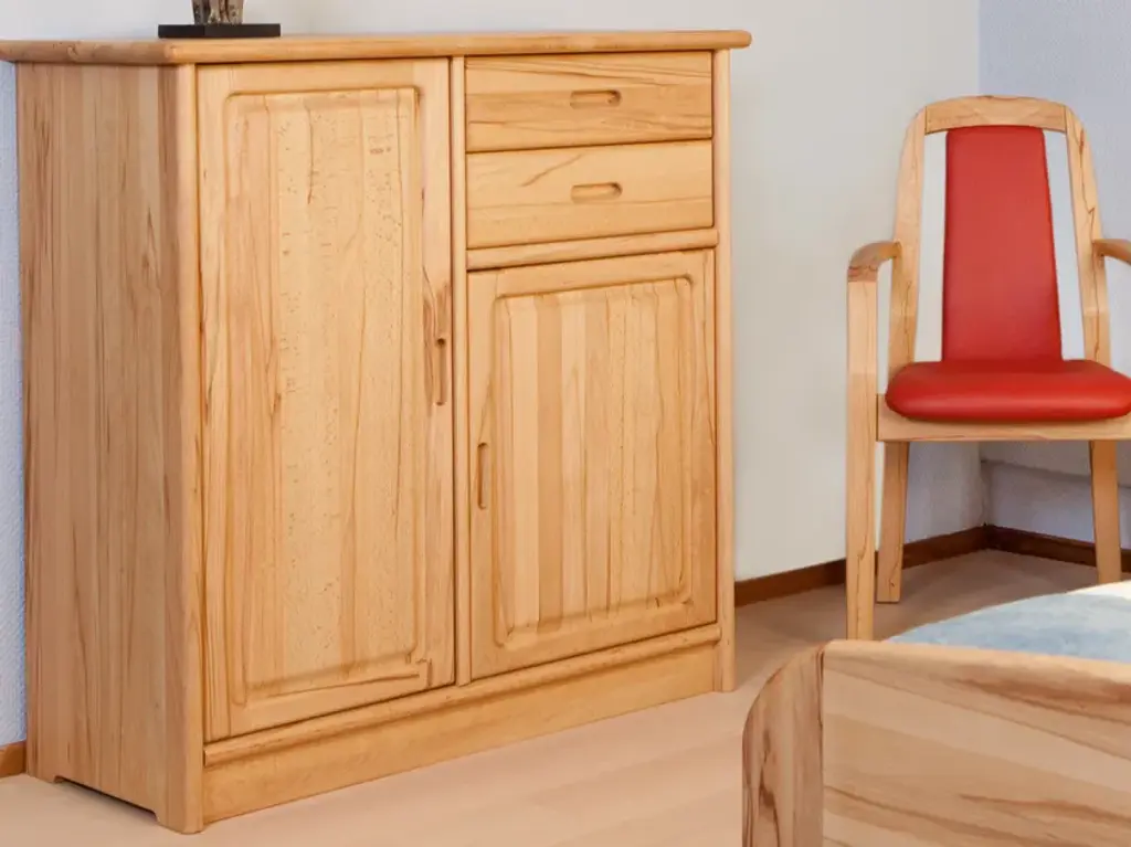 The Joinery Sideboard is made of wood of your choice: Cherry, Maple, Eastern Walnut or Oregon White Oak. Dimensions: 18"d x 66"w x 36"h