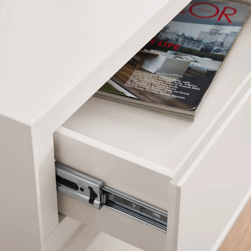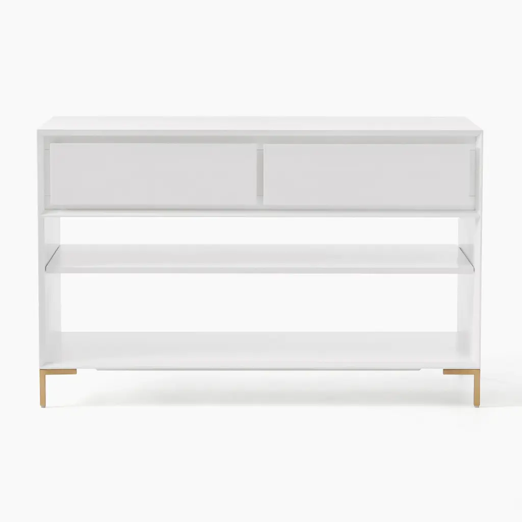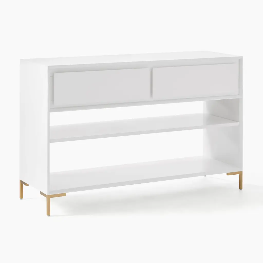 Equipped with two drawers and two open compartments for books, baskets or shoes, this ultra-functional console can be paired with other pieces in the collection to create your ideal storage system.
