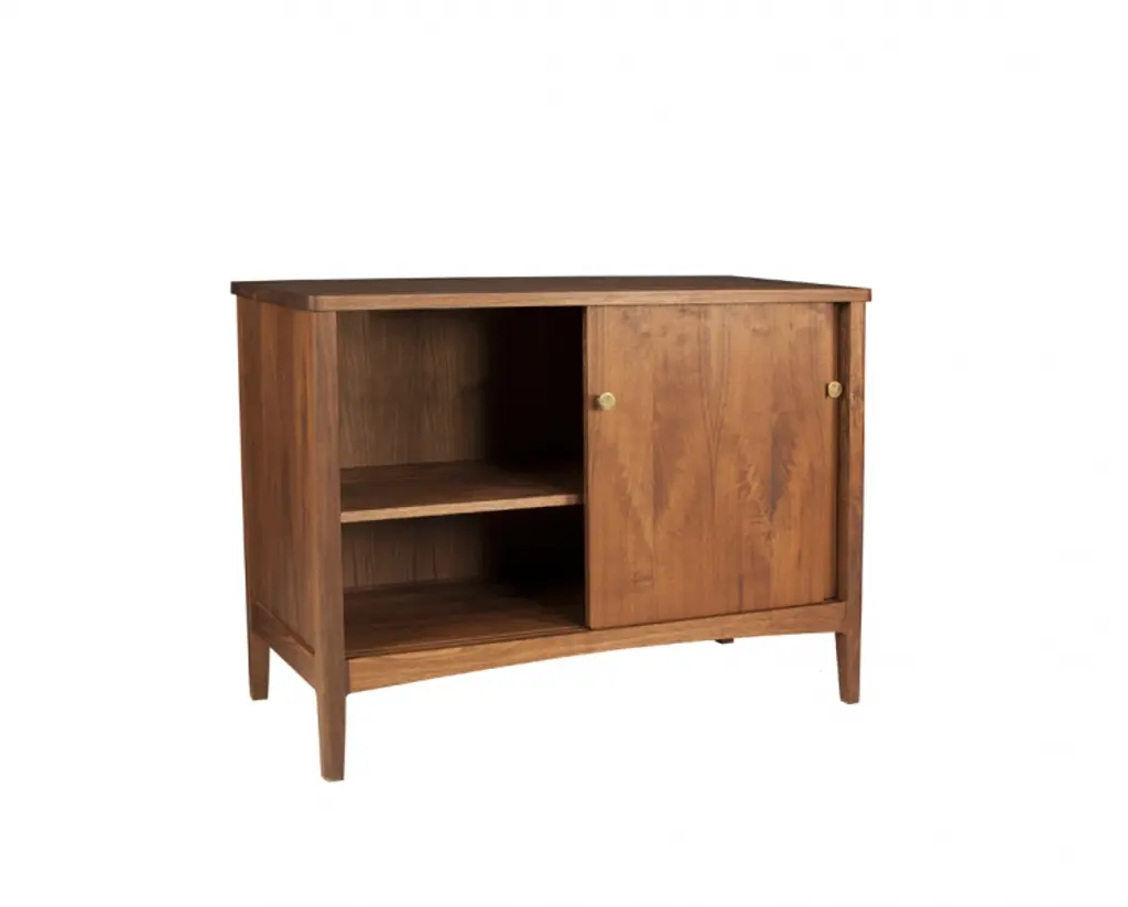 The Whitman sideboard is a versatile case that includes adjustable shelves behind sliding doors. Inspired by Mid-Century design, The Joinery’s Whitman collection features a timeless look including round corners on tops, a unique leg shape with a curved mortise and tenon joint at the stretcher.