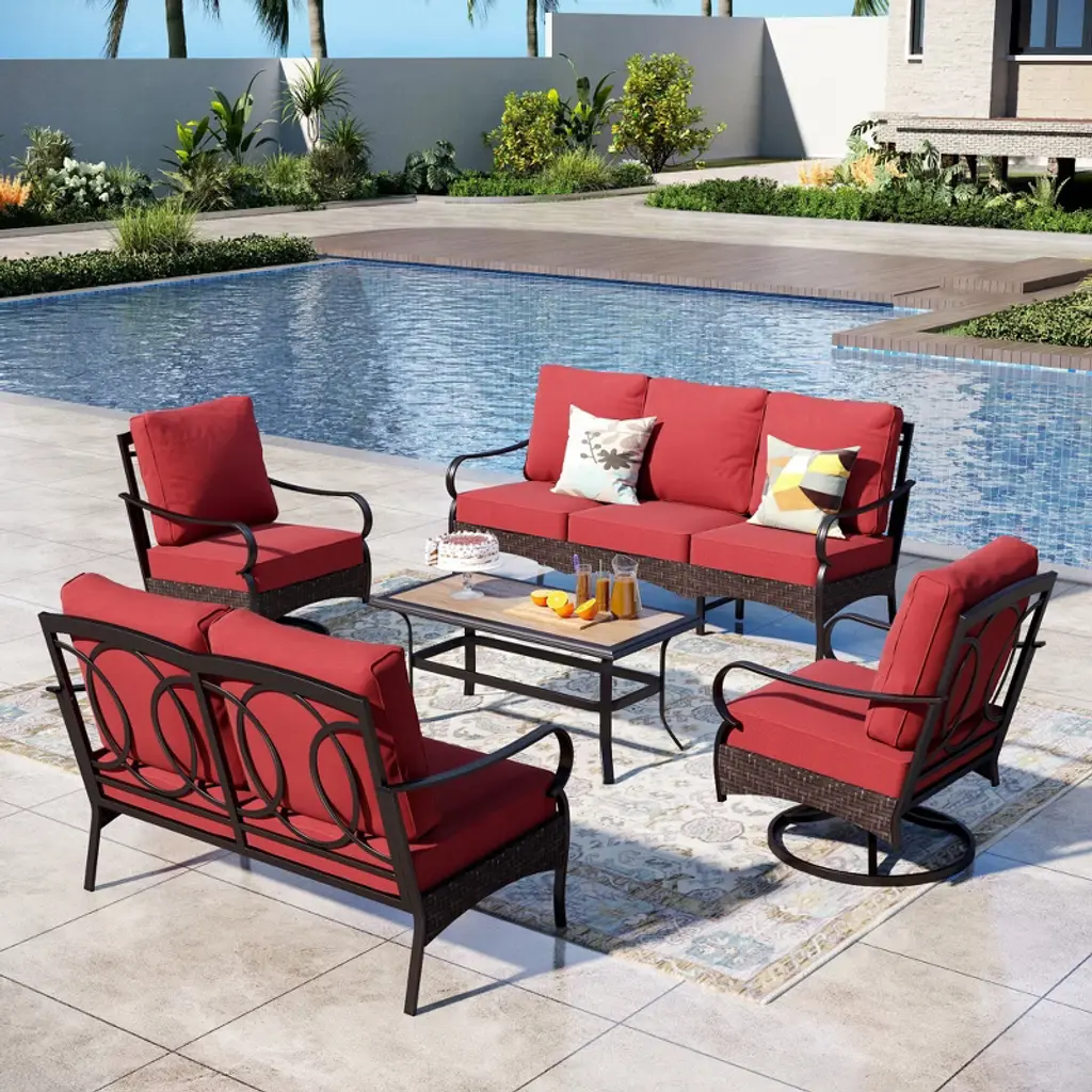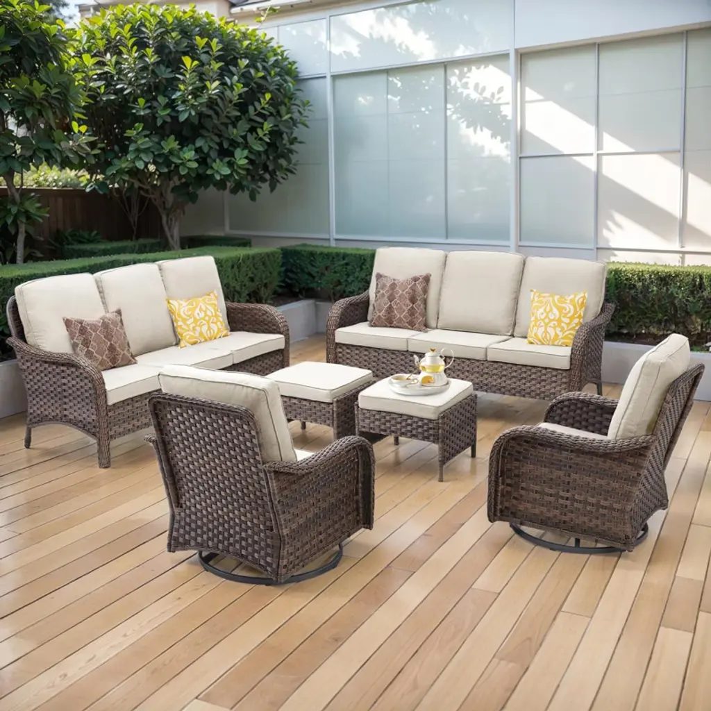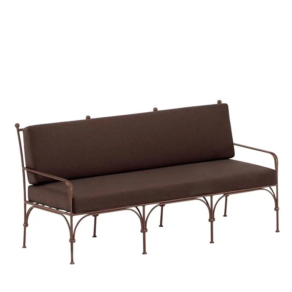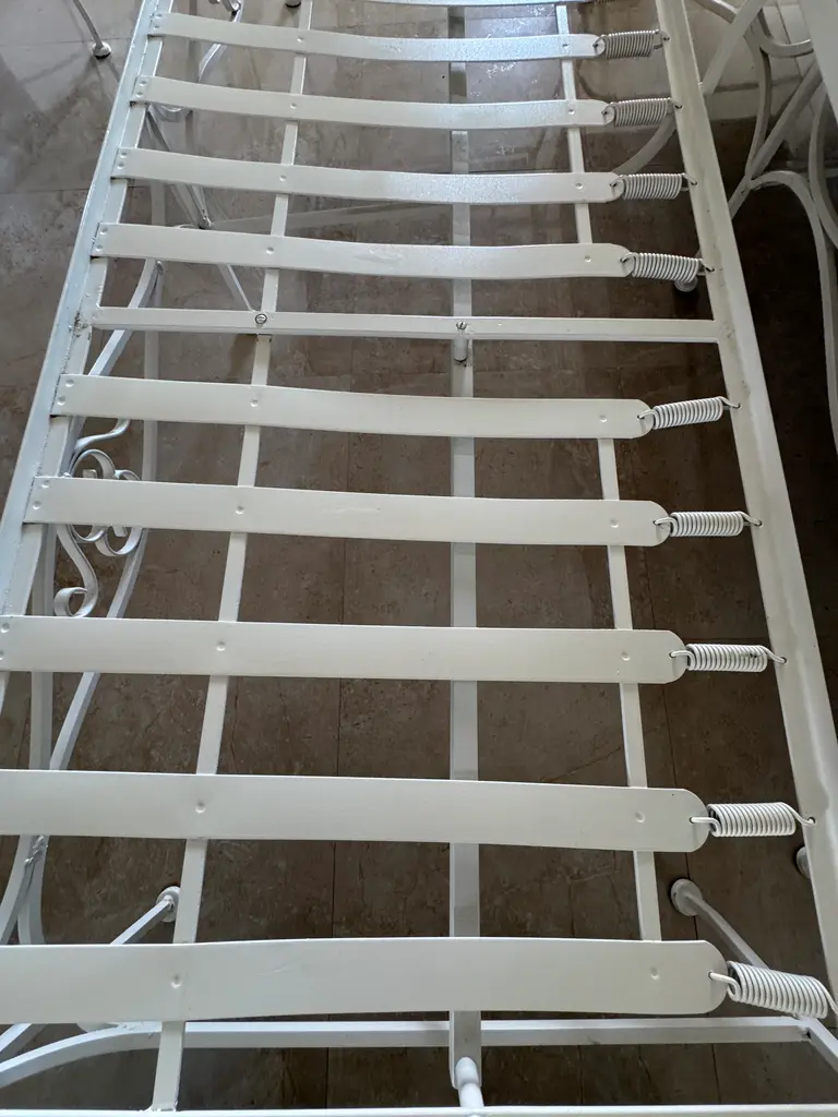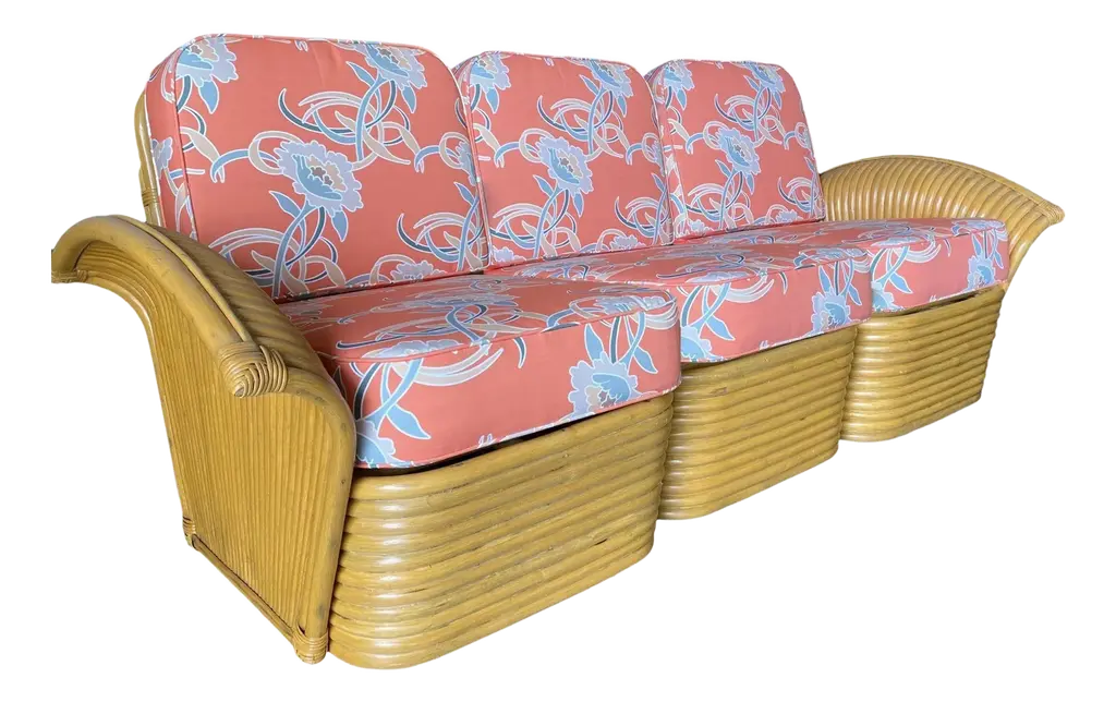 Bring timeless Palm Beach Regency style to your outdoor living space with this elegant wrought iron patio set. Featuring a classic white finish and graceful scrolling details, the set includes a spacious sofa and two matching armchairs. The sturdy wrought iron frames ensure durability while maintaining a light, airy silhouette, perfect for both covered patios and garden seating areas. This vintage set exudes resort glamour with its refined lines and versatile design, easily pairing with bright cushions or bold prints to complete the Palm Beach look. Ideal for entertaining or relaxing, it offers both sophistication and comfort in a chic mid-century style. Sofa measures 72" wide, 33" deep, 34" tall, 20" seat depth, 67" seat width, 18" seat height. Chairs measure 28.5" wide, 30" deep, 34" tall, 22" seat width, 20' seat depth, 17" seat height. This is a vintage item, it is in very good vintage condition. Some wear and tear expected with age and use. See pictures for details. This set was once black but was professionally painted white. There are some chips to the paint as seen in the pictures. The cushions were reupholstered 6 years ago.
