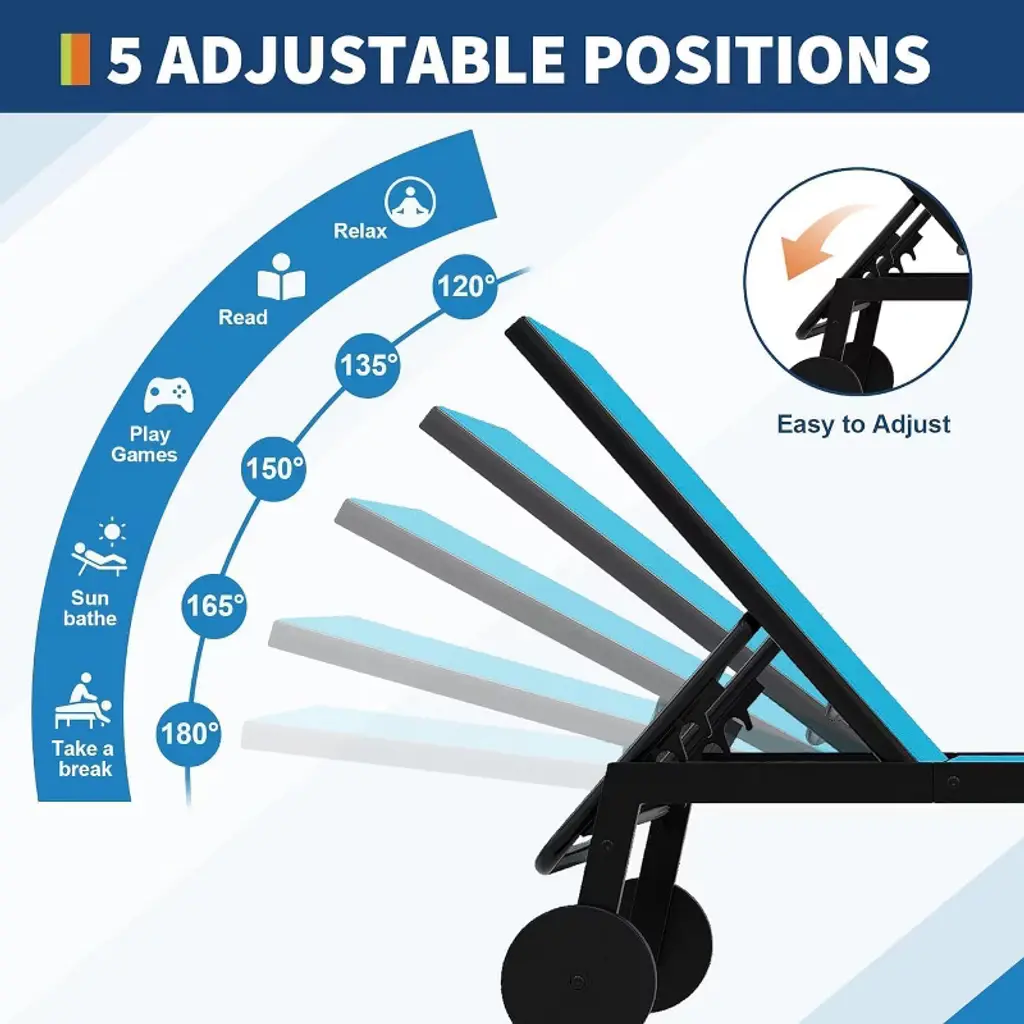 2 Patio Outdoor Textile Chaise Lounge Chairs With Side Table, Patio Chaise Lounge Set,blue