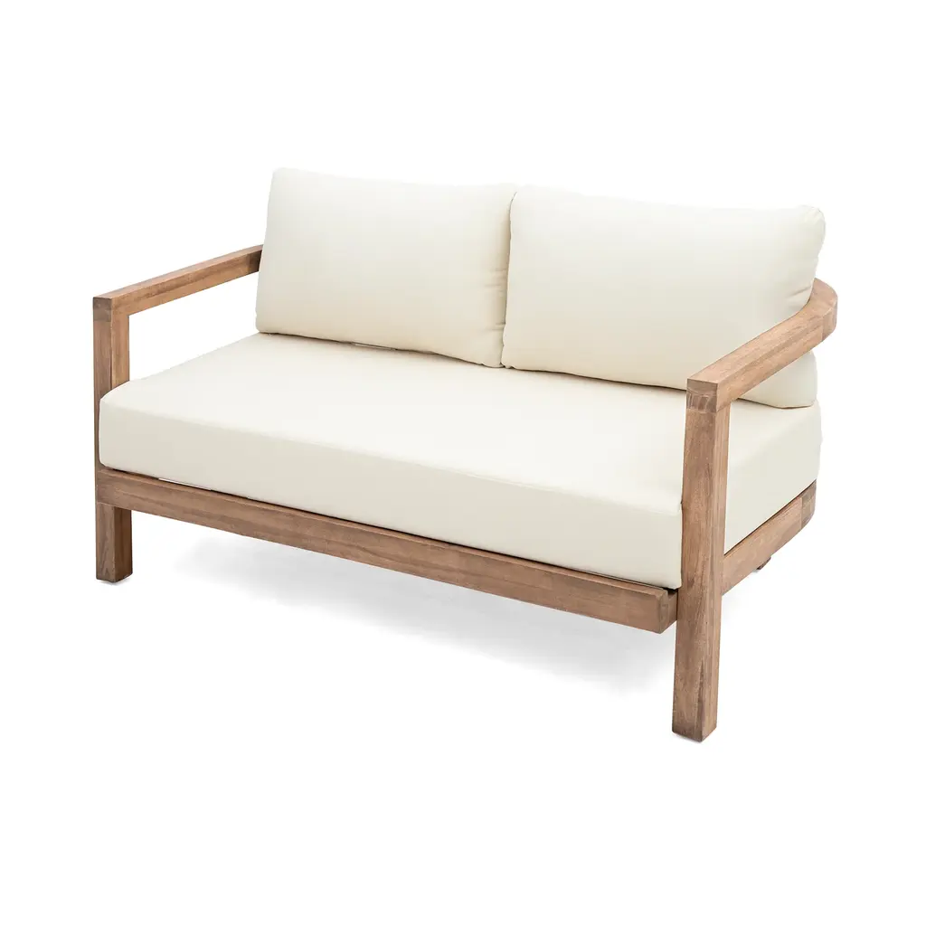 2-Piece Patio Set With Open Back Loveseat And Wooden Coffee Table