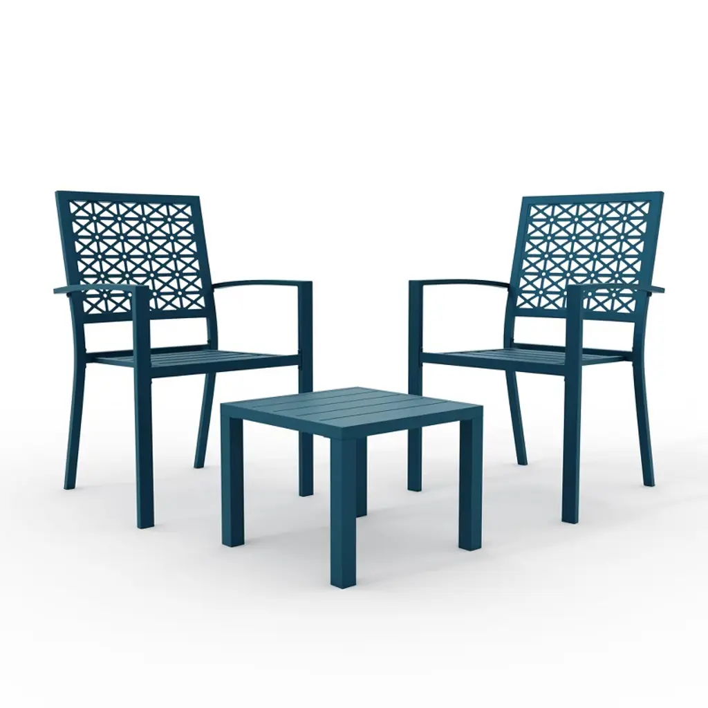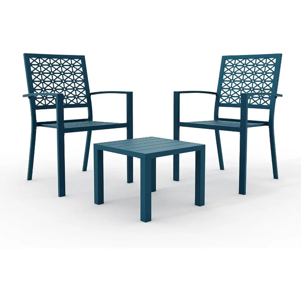 3 Piece Outdoor Bistro Set, Stackable Patio Conversation Set with Square Table and Chair for Indoor & Outdoor Porch Garden Patio Deck