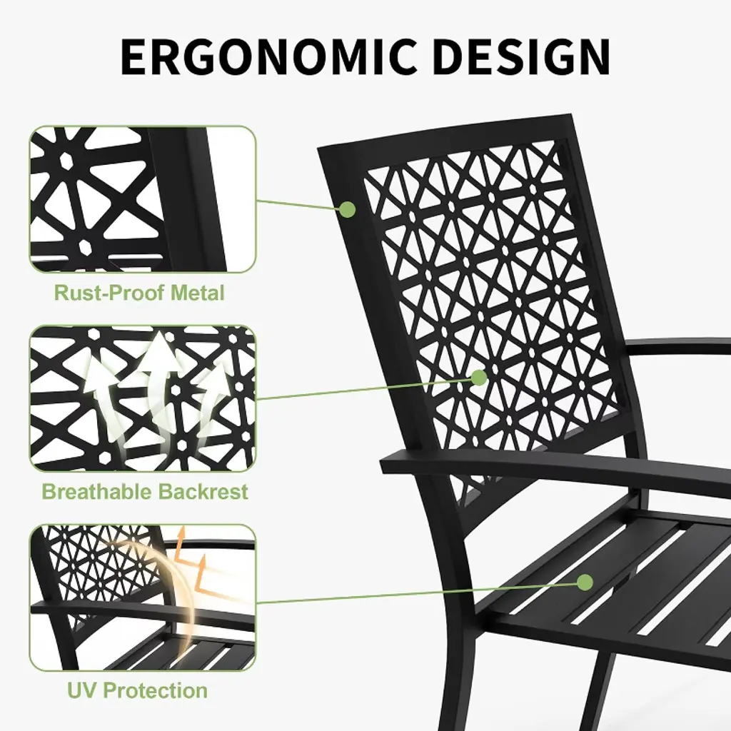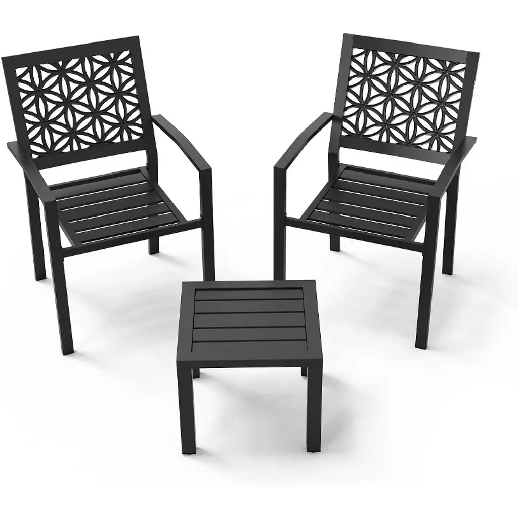 3 Piece Outdoor Bistro Set, Stackable Patio Conversation Set With Square Table And Chair For Indoor & Outdoor Porch Garden Patio Deck, Black
