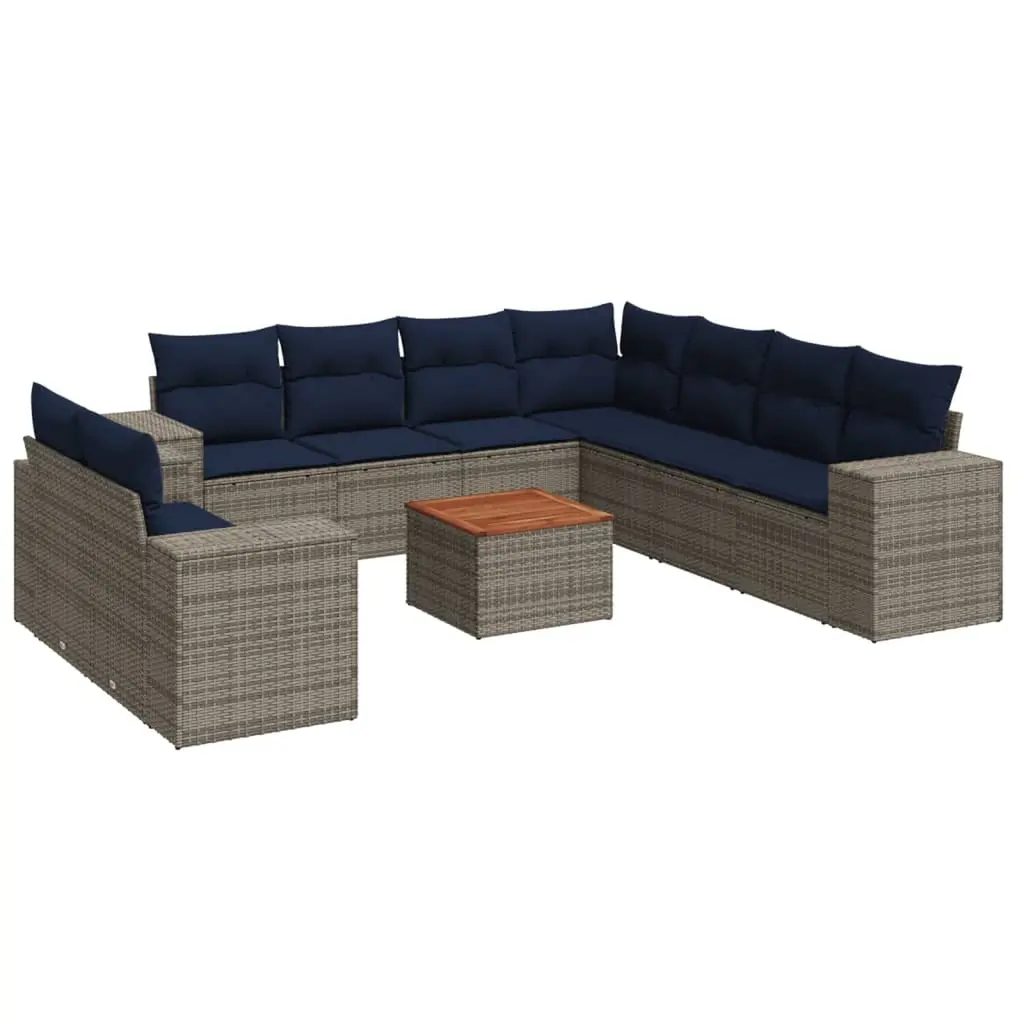 3 Pieces Patio Set, Cushioned Sofa With Ottoman And Glass Coffee Table, Navy