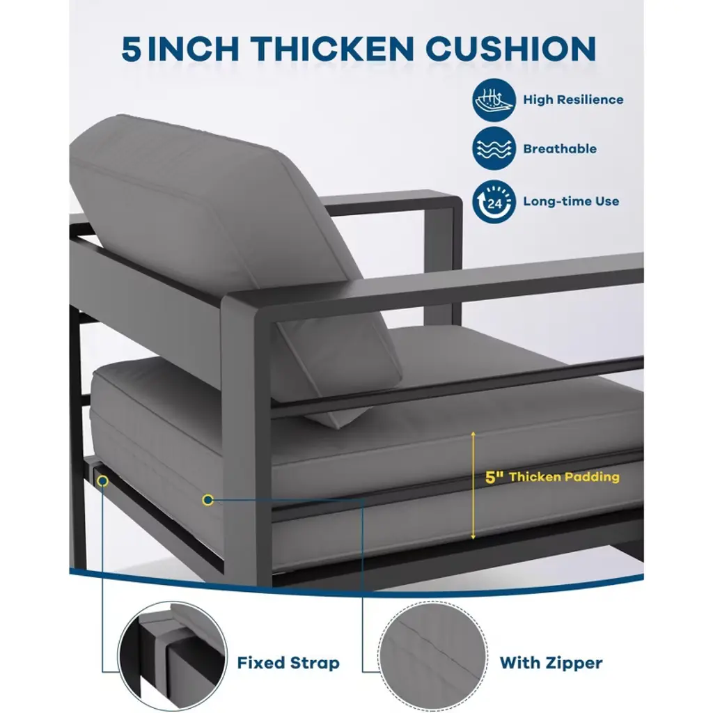 4-piece Outdoor Patio Furniture Set, Aluminum Outdoor Sofa With Removable Cushions & Glass Top Coffee Table, Modern Patio Conversation Sets