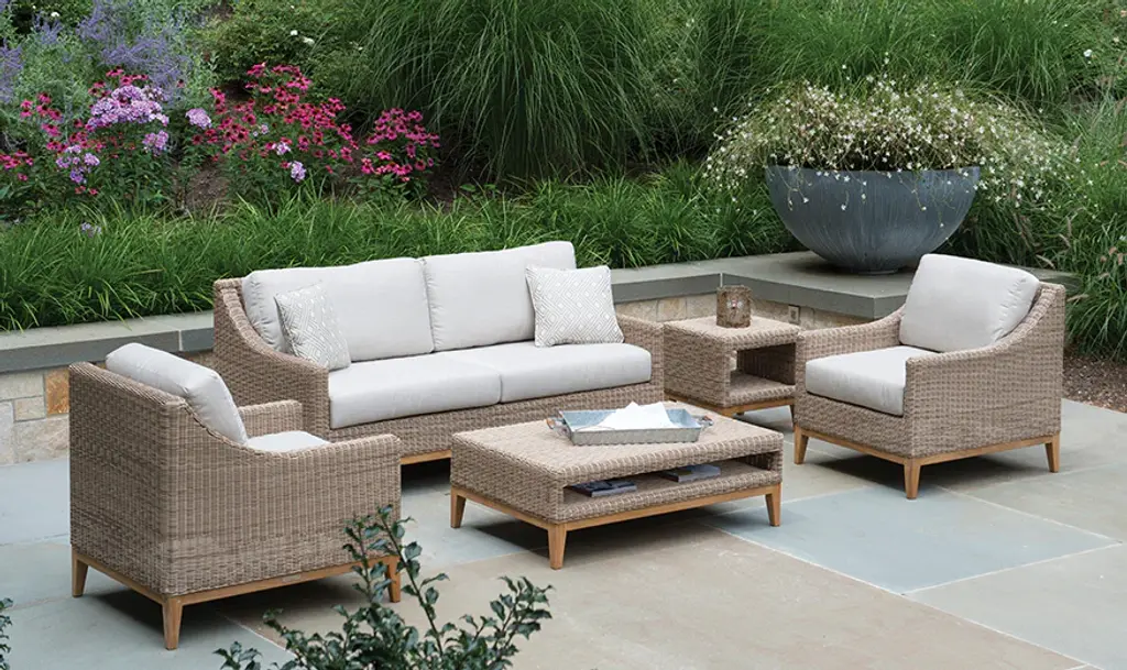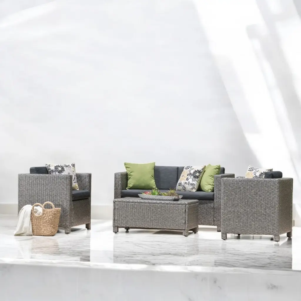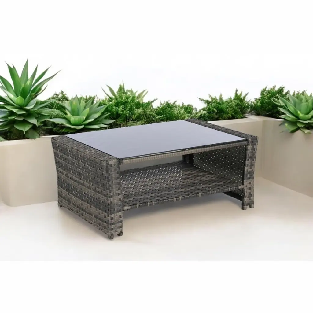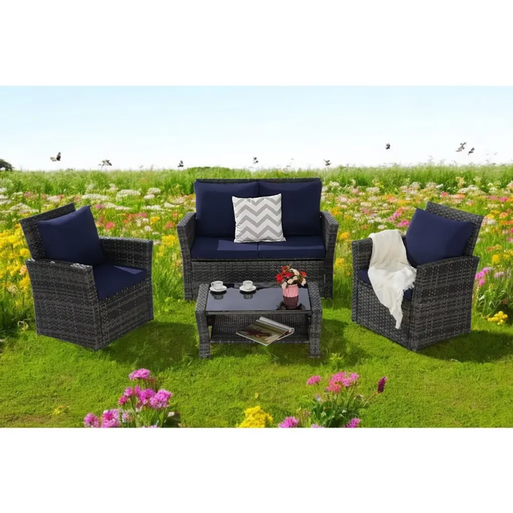 4-piece Outdoor Patio Furniture Set, Garden Wicker Sofa With Tempered Glass Coffee Table, Poolside Lawn Chairs, Cushions-dark Gray