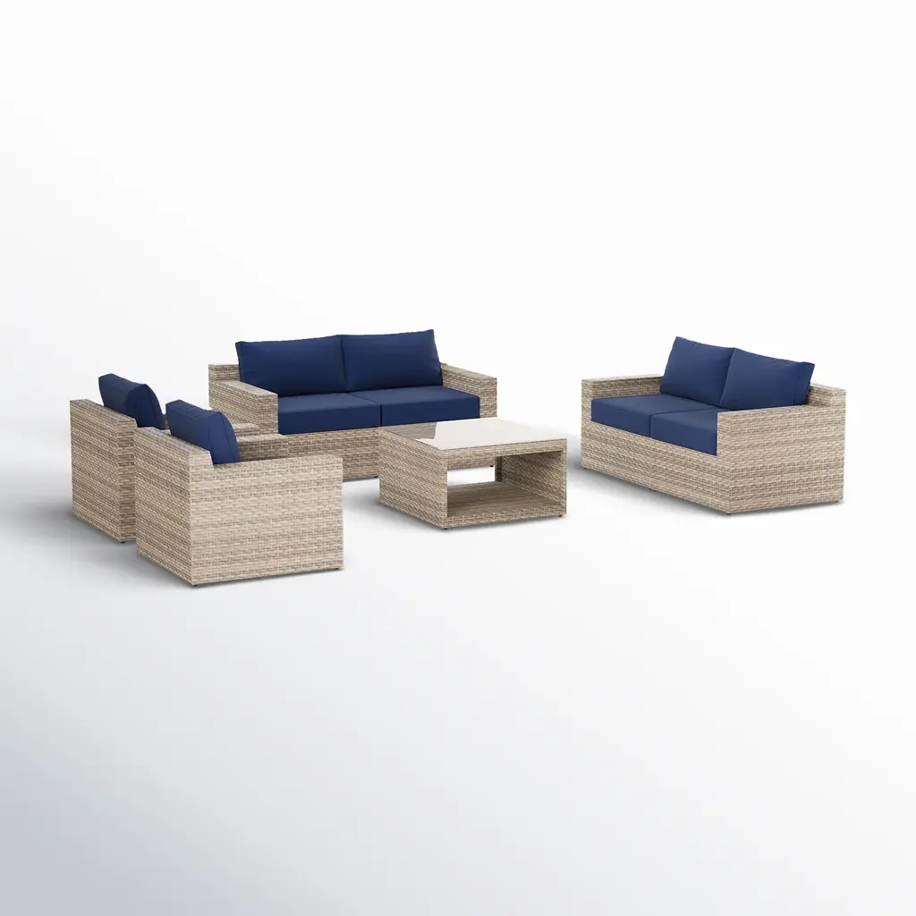 4 Piece Patio Conversation Sets With Cushions And Coffee Table Blue