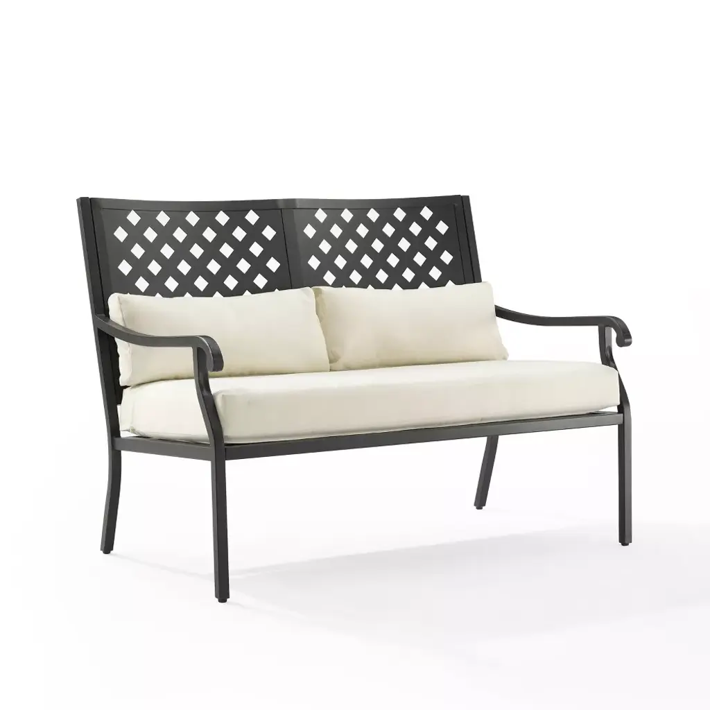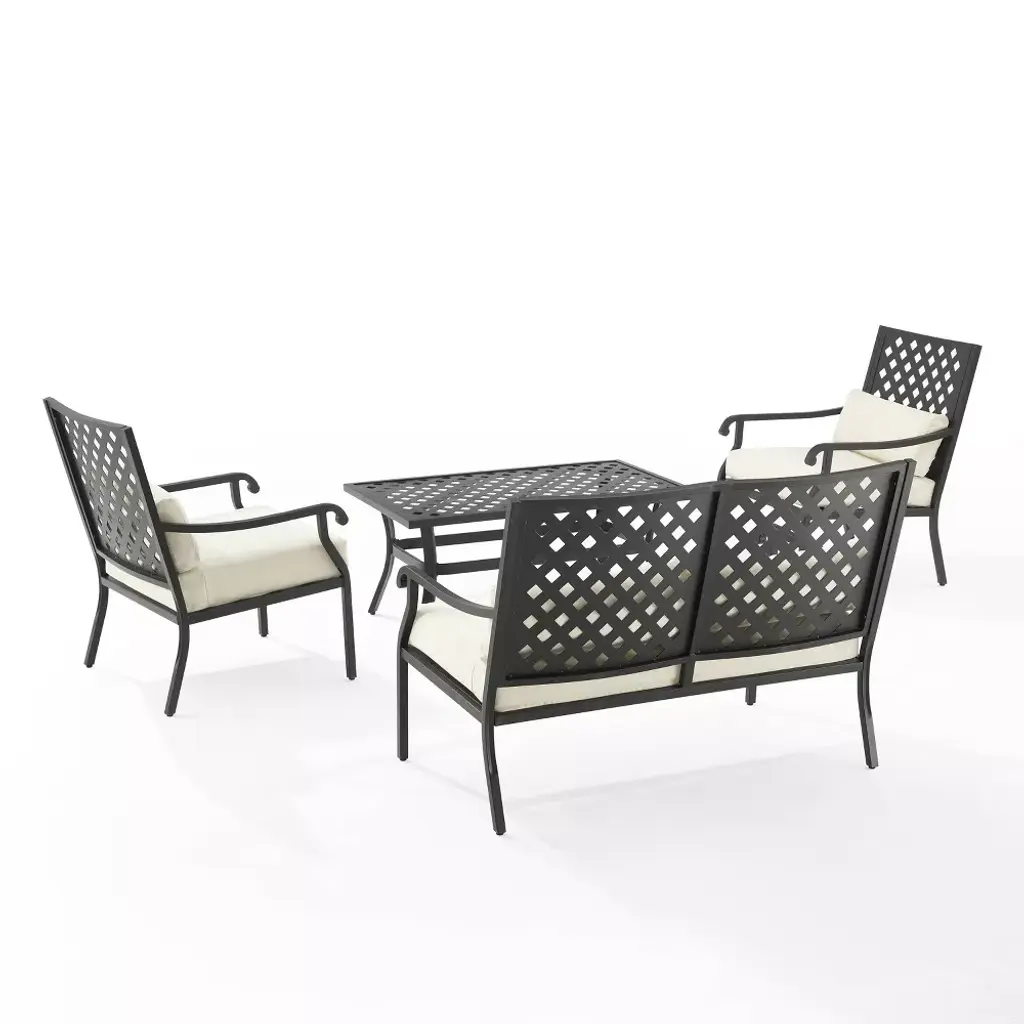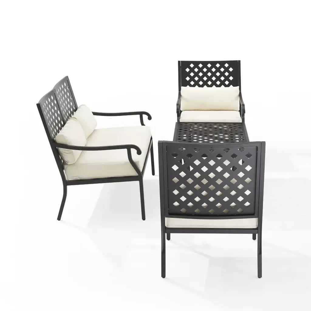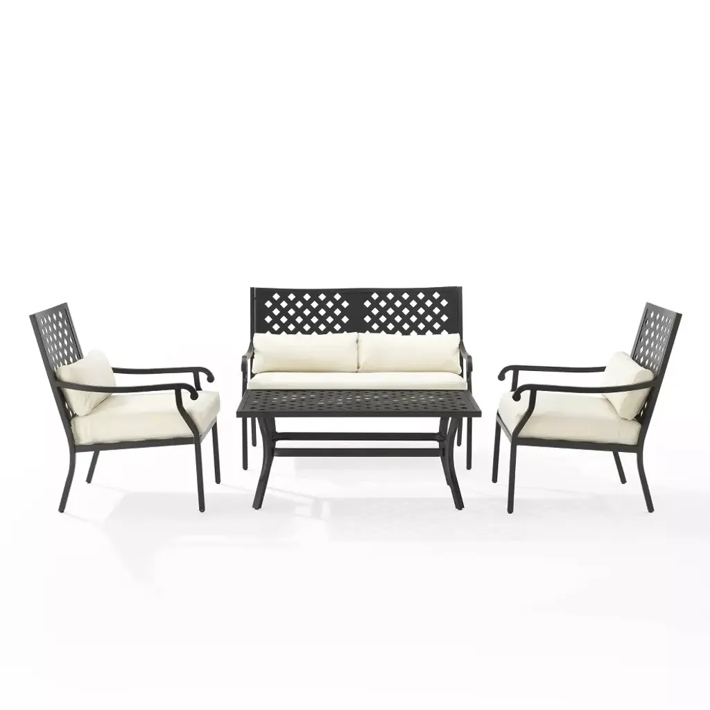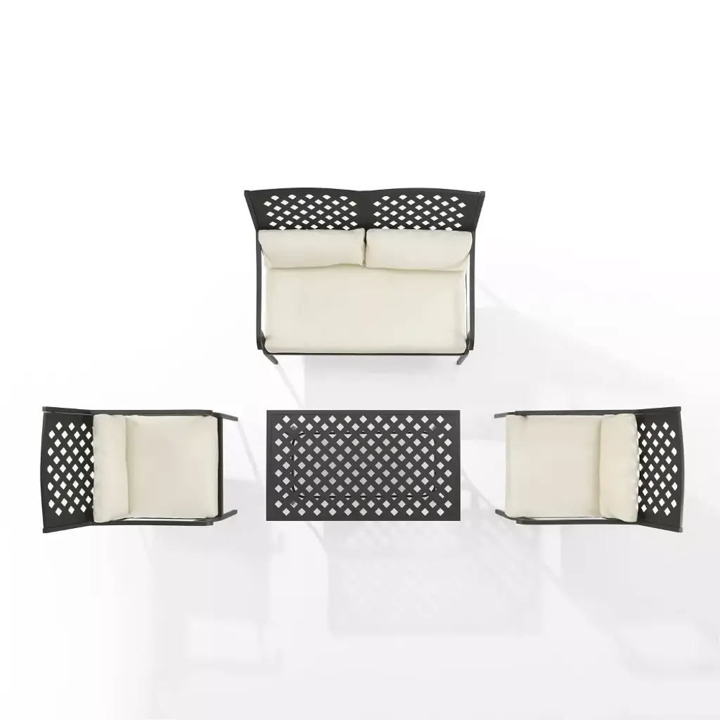 4Pc Alistair Outdoor Steel Conversation Set Creme/matte Black - Crosley: Weather-resistant Patio Seating With Coffee Table