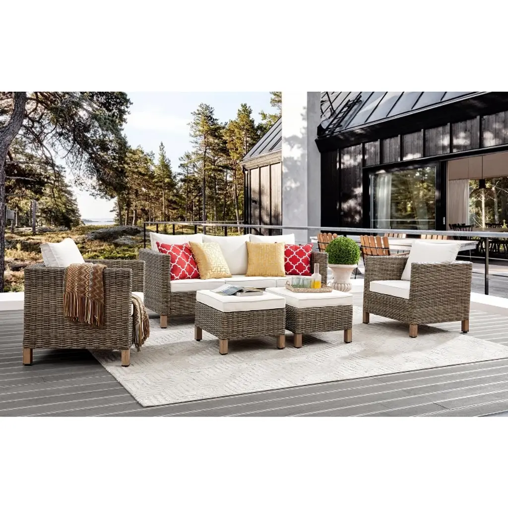 Transform your patio, poolside, or balcony into a luxury retreat! Crafted with rust-proof powder-coated metal frames and handwoven all-weather PE rattan, this set withstands rain, sun, and heavy use. Features fade-resistant waterproof cushions, modular flexibility for endless layouts, and tool-free assembly. Host effortlessly with durable, spill-proof elegance!