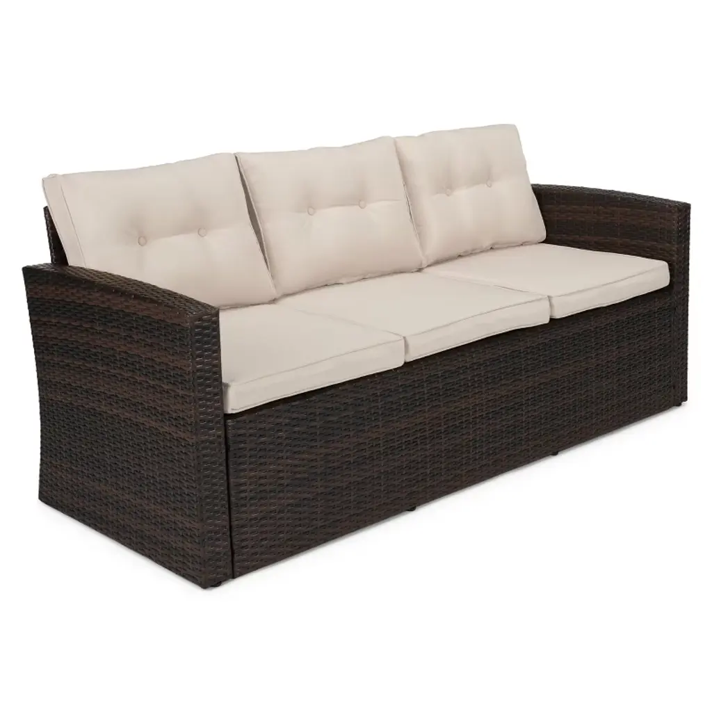 Create an instant outdoor entertainment space with this complete 6-piece conversation set. Crafted with durable brown all-weather wicker and plush polyester cushions, it offers both comfort and lasting style. Dual hidden storage tables make it easy to keep essentials close at hand, while seating for 6+ ensures effortless backyard gatherings.