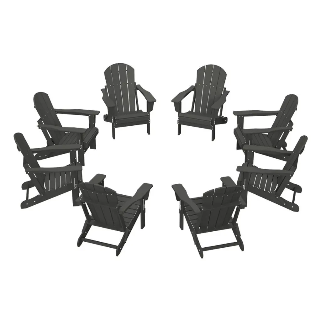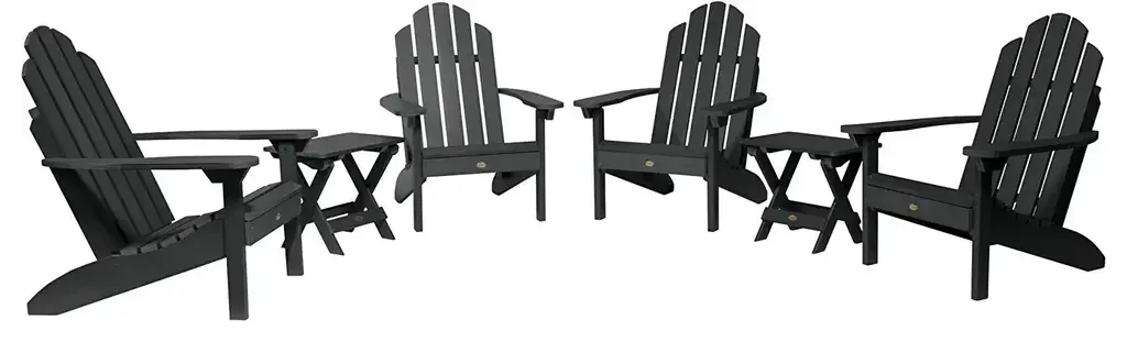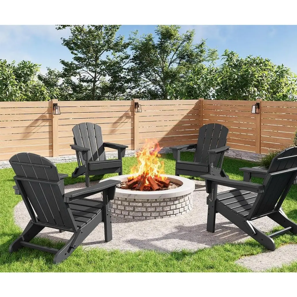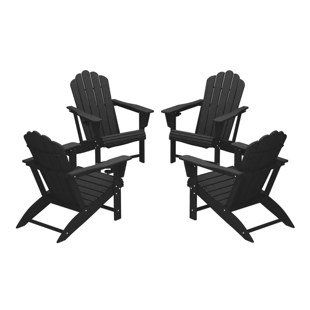 Outdoor Patio Set Of 4 Adirondack Chairs And 2 Folding Tables, Fade Resistant, Black