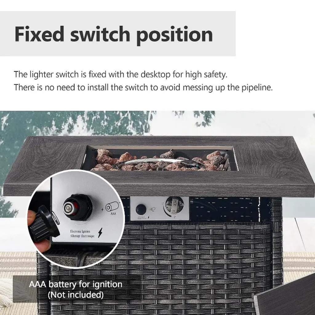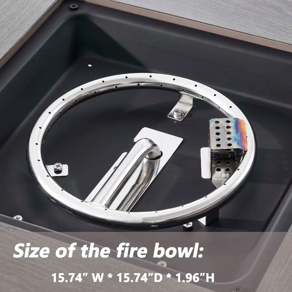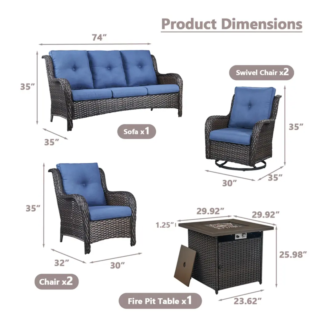 Experience the comfort of this durable and reliable 6-piece patio furniture set. Made of high-quality PE rattan and a sturdy powder-coated steel frame it is built to withstand a variety of weather conditions ensuring years of outdoor enjoyment. The fire pit table is capable of releasing 50000 BTU of heat so you can feel warm even outdoors while keeping your food warm. Whether you're on a balcony lawn garden or poolside this set is perfect for all outdoor spaces.
