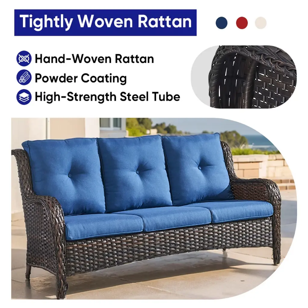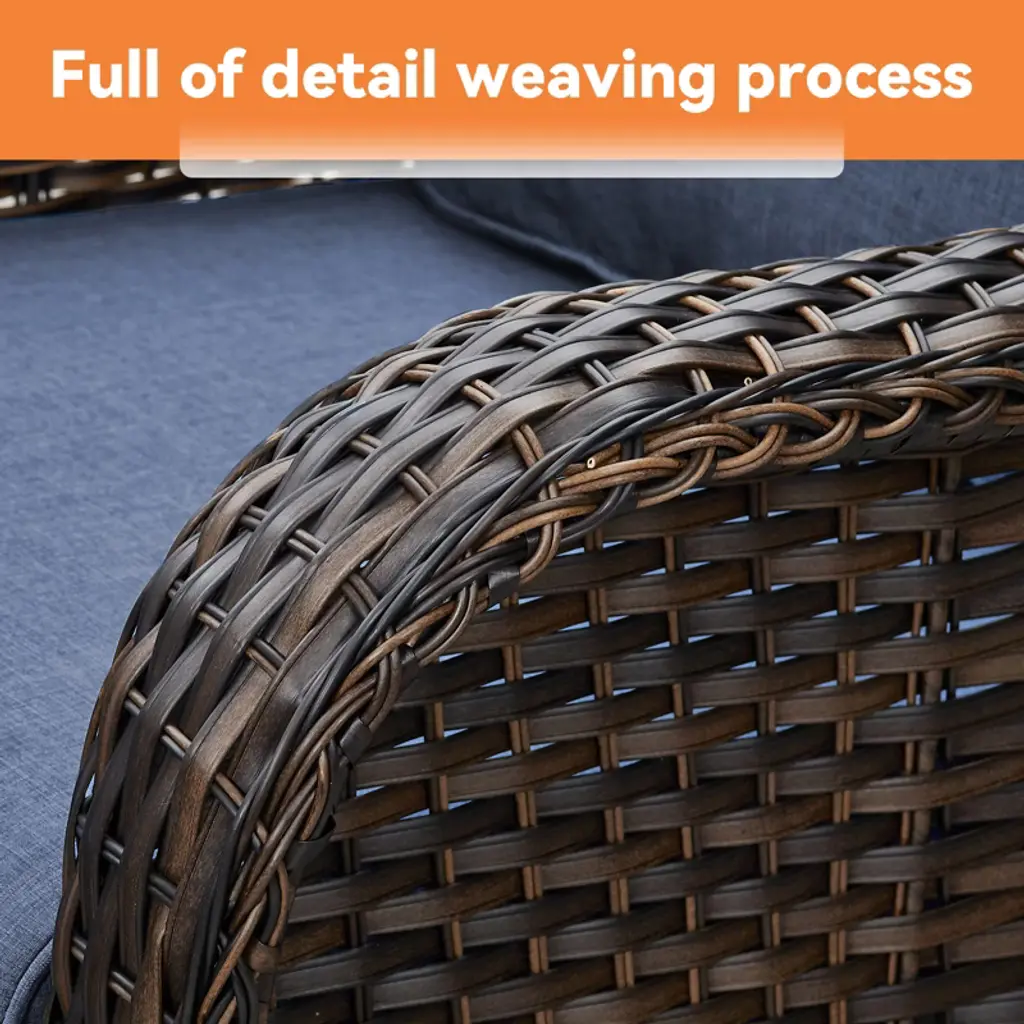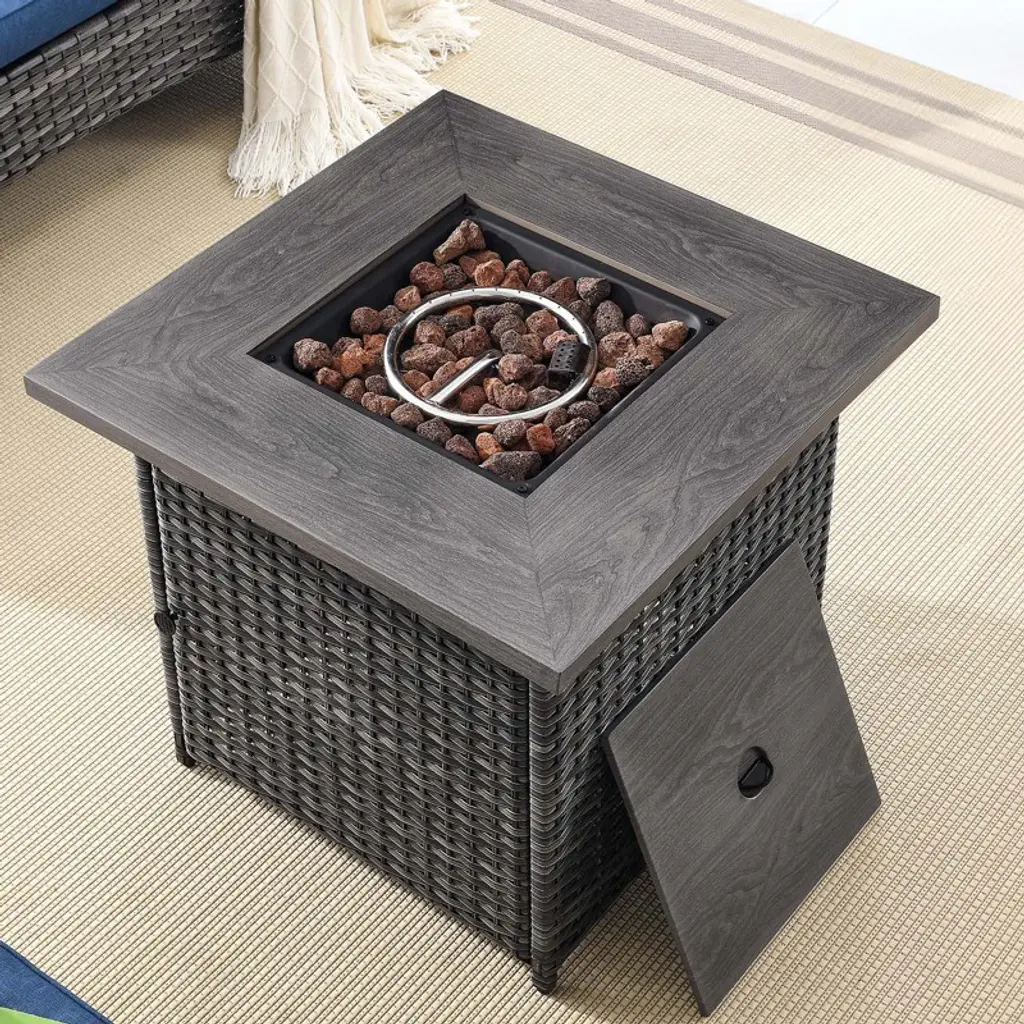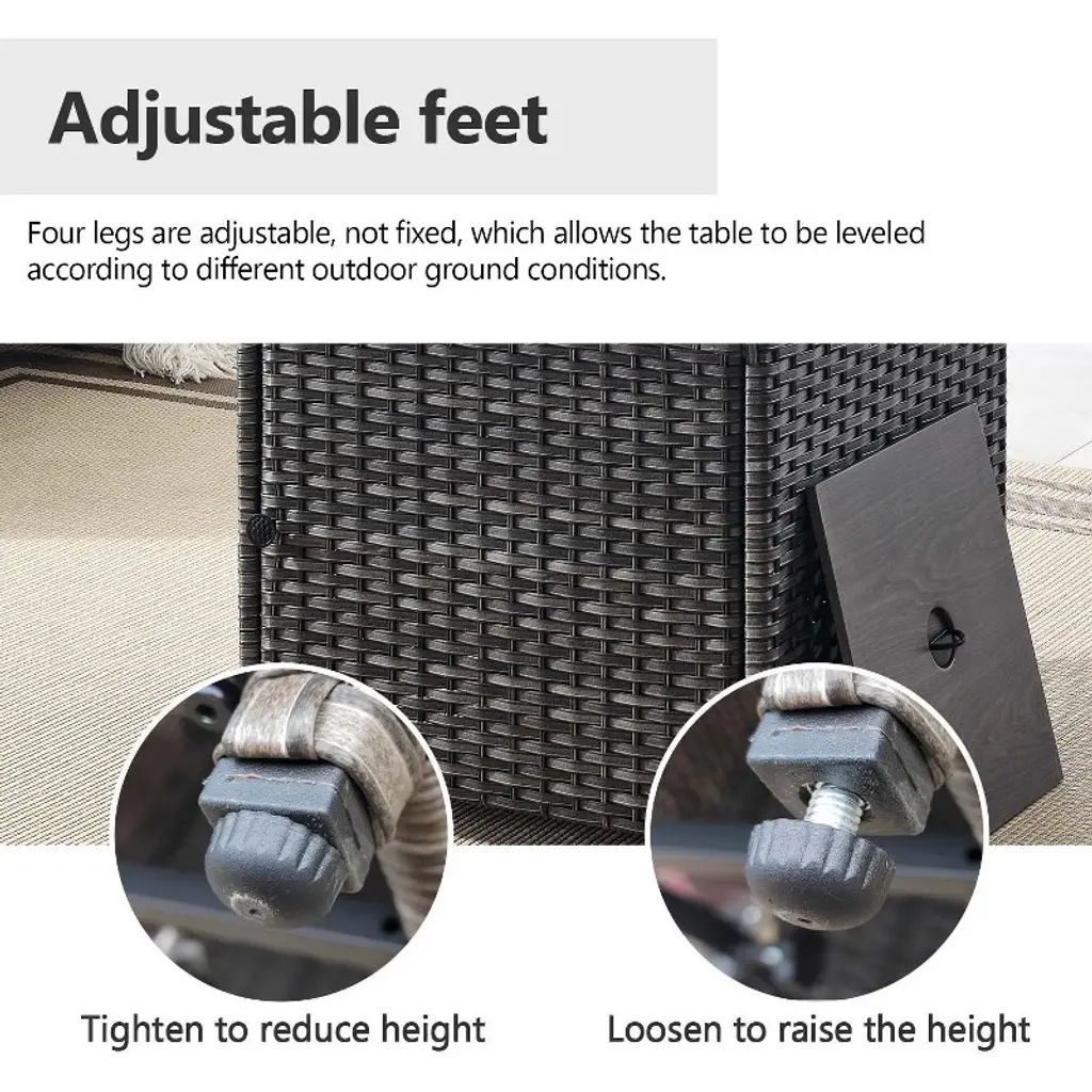 Experience the comfort of this durable and reliable 6-piece patio furniture set. Made of high-quality PE rattan and a sturdy powder-coated steel frame it is built to withstand a variety of weather conditions ensuring years of outdoor enjoyment. The fire pit table is capable of releasing 50000 BTU of heat so you can feel warm even outdoors while keeping your food warm. Whether you're on a balcony lawn garden or poolside this set is perfect for all outdoor spaces.