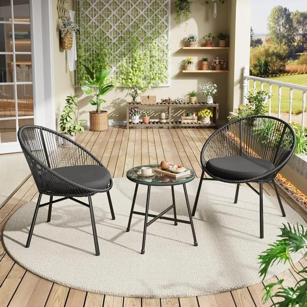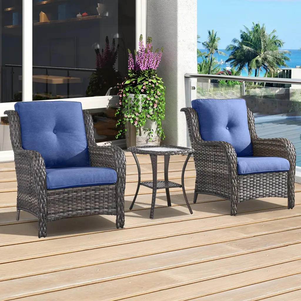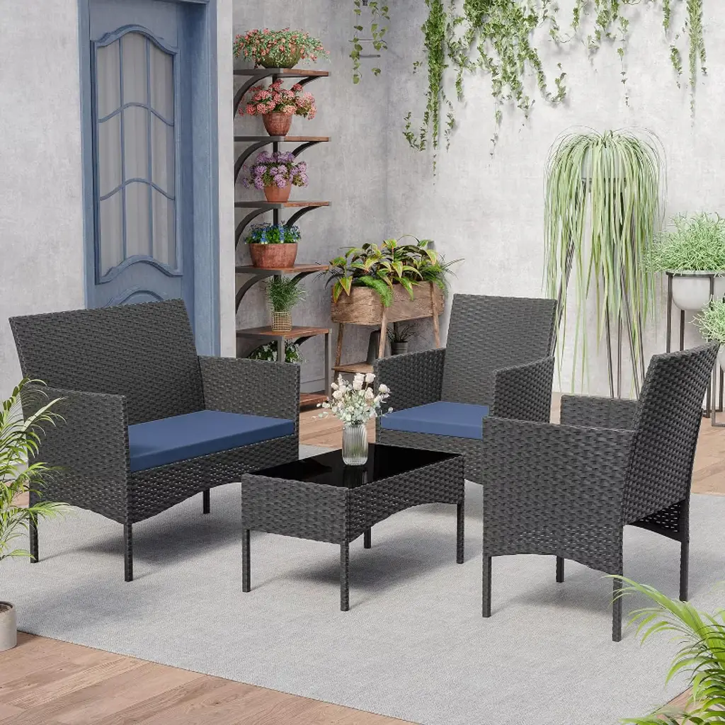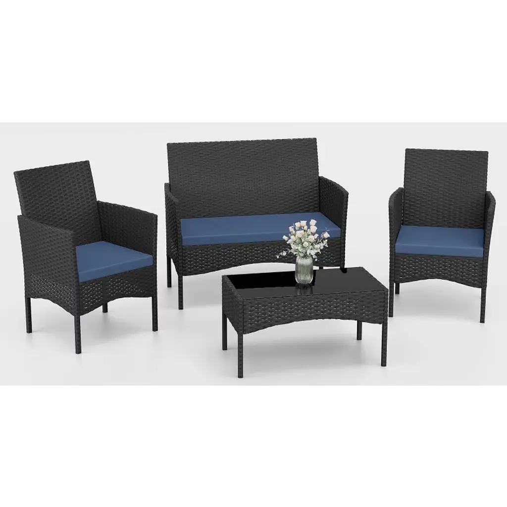 Alaulm Patio Furniture Set 4 Pieces Outdoor Wicker Rattan Chairs Conversation Sets W/coffee Table, Rocking Bistro Set, Navy Blue