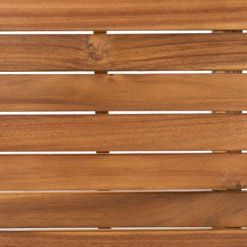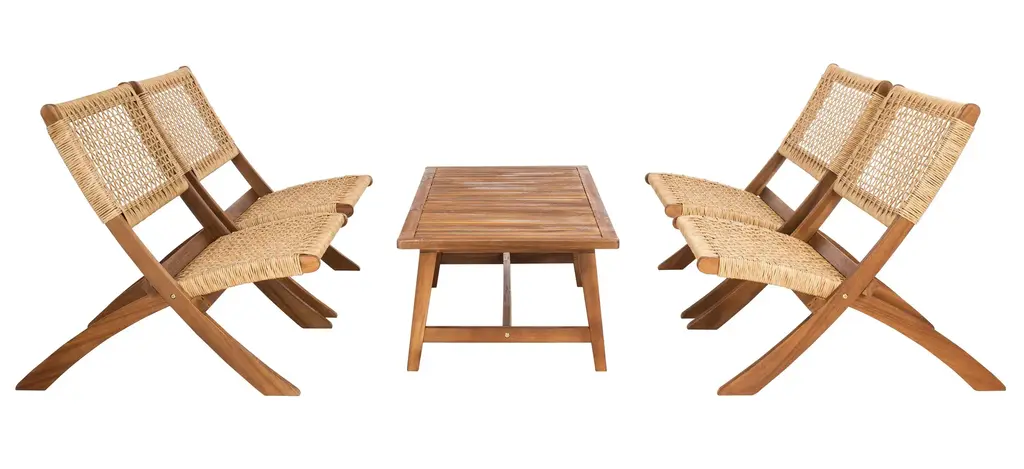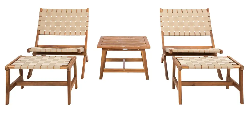 Entertain guests poolside or soak up the sun on your patio with this 5-piece outdoor furniture set. It comes with two folding lounge chairs, two matching ottomans, and one cocktail table. Each piece is crafted from weather-resistant acacia wood, making this set just right for sunshiny days and rainy nights. We love how the chairs and ottomans feature woven seats and back for a breezy, coastal look. Plus, this set comes in your choice of color to suit your outdoor decor.