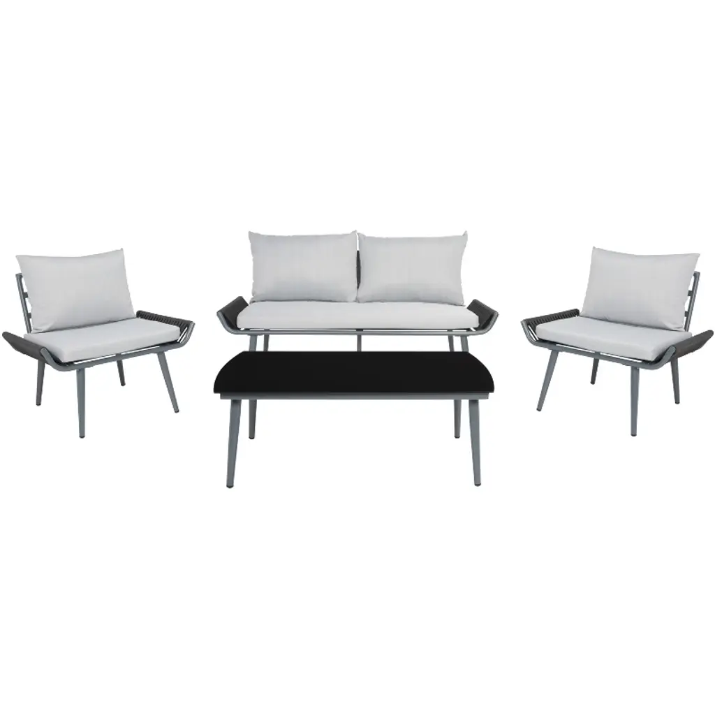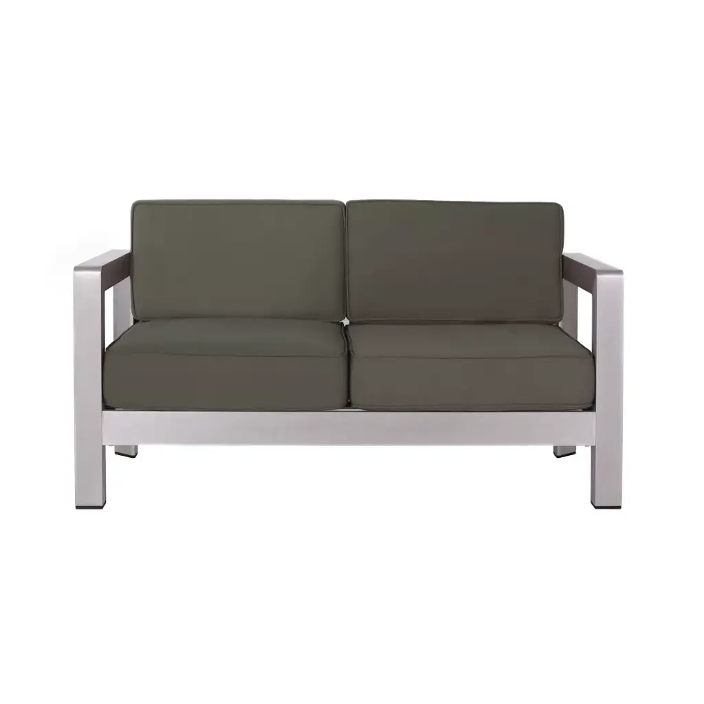 Aviara 4pc Aluminum Chat Set - Silver/Khaki - Christopher Knight Home