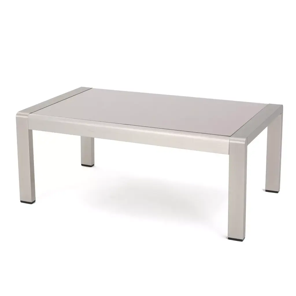 Set the tone for backyard get-togethers for years to come with this outdoor Christopher Knight Home Aviara 4pc Aluminum Chat Set made for four to enjoy together; featuring weather-resistant cushioning and rust-proof, anodized aluminum frames, these selections are designed with regular wear, tear, and mother nature in mind, making them an excellent investment for those seeking items built to last. Included with this set along with the accommodating seating arrangement is a sleek, matching coffee table with a tempered glass top, the perfect surface to share good food and cold drinks over; retreat from the stress of the day in luxury with your three closest friends.
