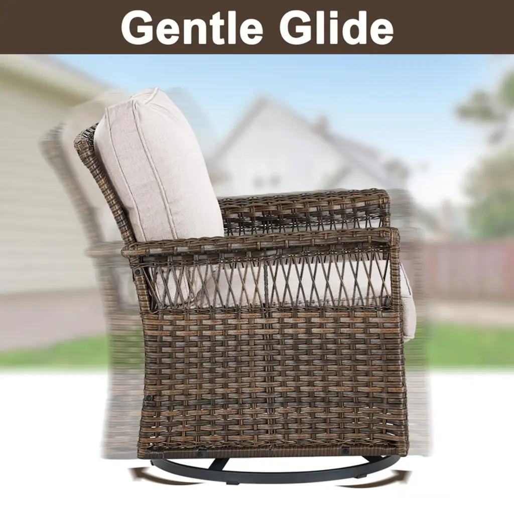 Belord 3 Pieces Patio Furniture Set, Patio Couch Set With Swivel Rocking Gliding Chairs With All Weather Brown Wicker And Olefin Cushion Cover