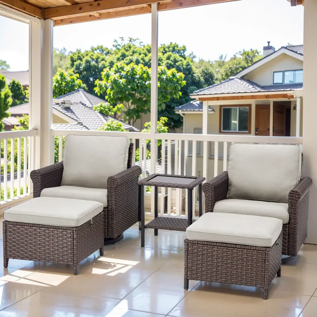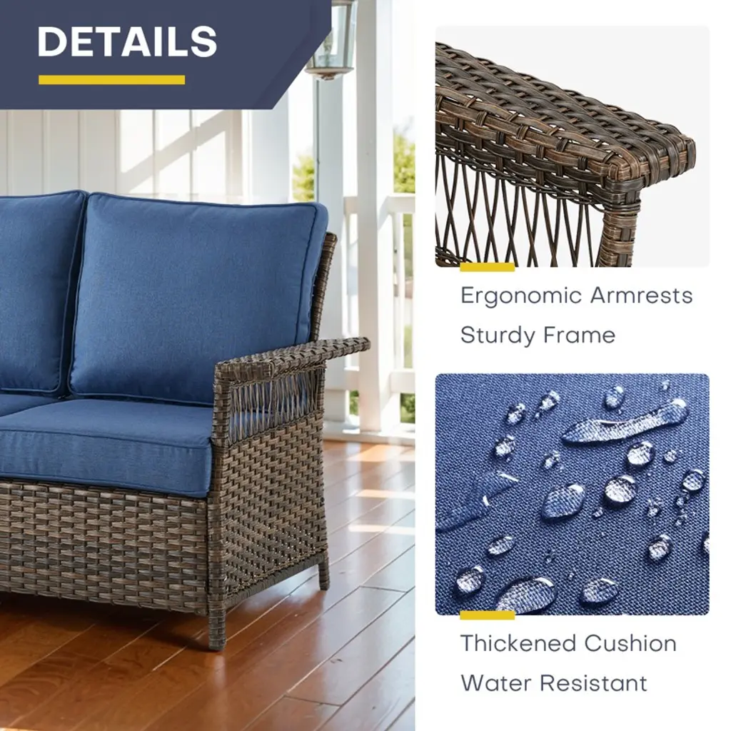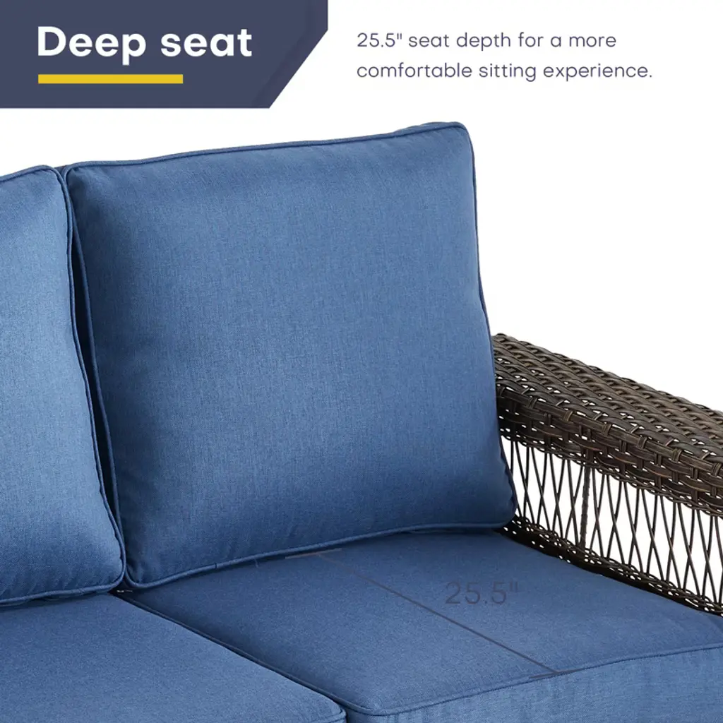 Elevate your outdoor space with the "Seagull" patio conversation set, a perfect blend of elegance and durability. This exquisite ensemble features one outdoor 3-seater sofa and two patio swivel rocking chairs, meticulously crafted from weather-resistant PE rattan and supported by a powder-coated steel frame for lasting resilience. Inspired by the graceful form of seagulls, the patio set's ventilated cut-outs ensure optimal airflow, while the inverted trapezoidal back cushions provide exceptional comfort, making it ideal for long, leisurely conversations. Designed for both style and performance, the "Seagull" boasts wider armrests for added relaxation and premium Olefin fabric cushion covers - breathable, UV-resistant, and water-repellent - ensuring beauty that endures season after season. Whether hosting gatherings or enjoying quiet moments outdoors, this set delivers unmatched sophistication and functionality, making it the ultimate choice for your summer retreat.