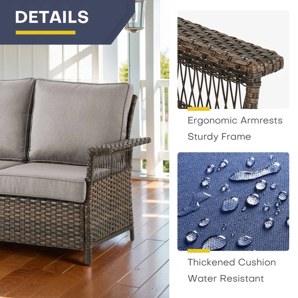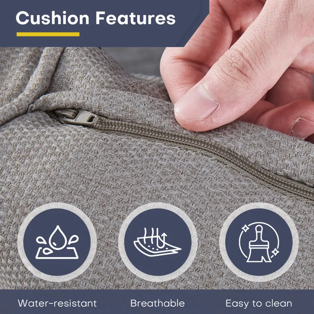 Elevate your outdoor space with the "Seagull" patio conversation set, a perfect blend of elegance and durability. This exquisite ensemble features one outdoor 3-seater sofa and two patio swivel rocking chairs, meticulously crafted from weather-resistant PE rattan and supported by a powder-coated steel frame for lasting resilience. Inspired by the graceful form of seagulls, the patio set's ventilated cut-outs ensure optimal airflow, while the inverted trapezoidal back cushions provide exceptional comfort, making it ideal for long, leisurely conversations. Designed for both style and performance, the "Seagull" boasts wider armrests for added relaxation and premium Olefin fabric cushion covers - breathable, UV-resistant, and water-repellent - ensuring beauty that endures season after season. Whether hosting gatherings or enjoying quiet moments outdoors, this set delivers unmatched sophistication and functionality, making it the ultimate choice for your summer retreat.