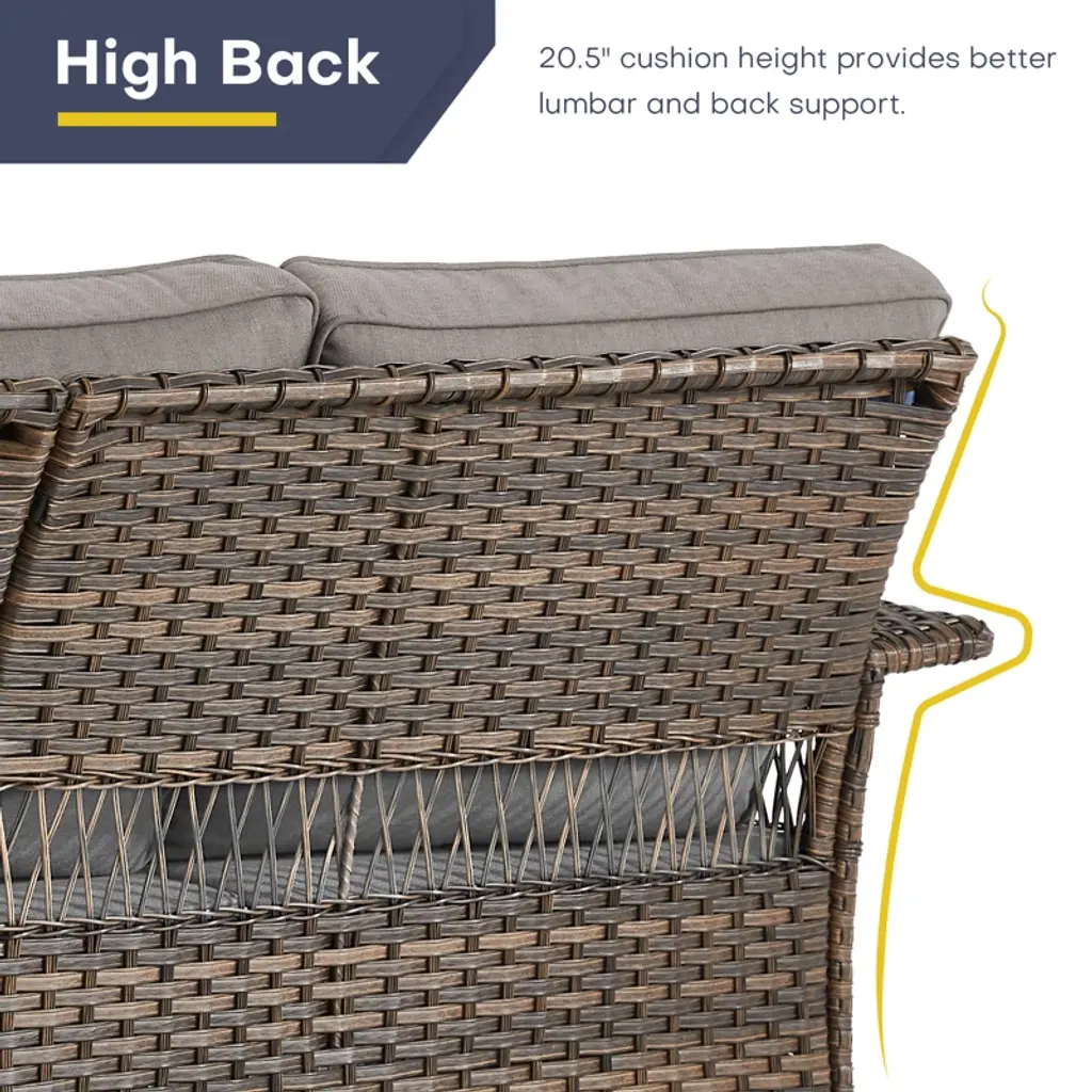 Belord 3 Pieces Patio Furniture Set, Patio Couch Set With Swivel Rocking Gliding Chairs With All Weather Brown Wicker And Olefin Cushion Cover