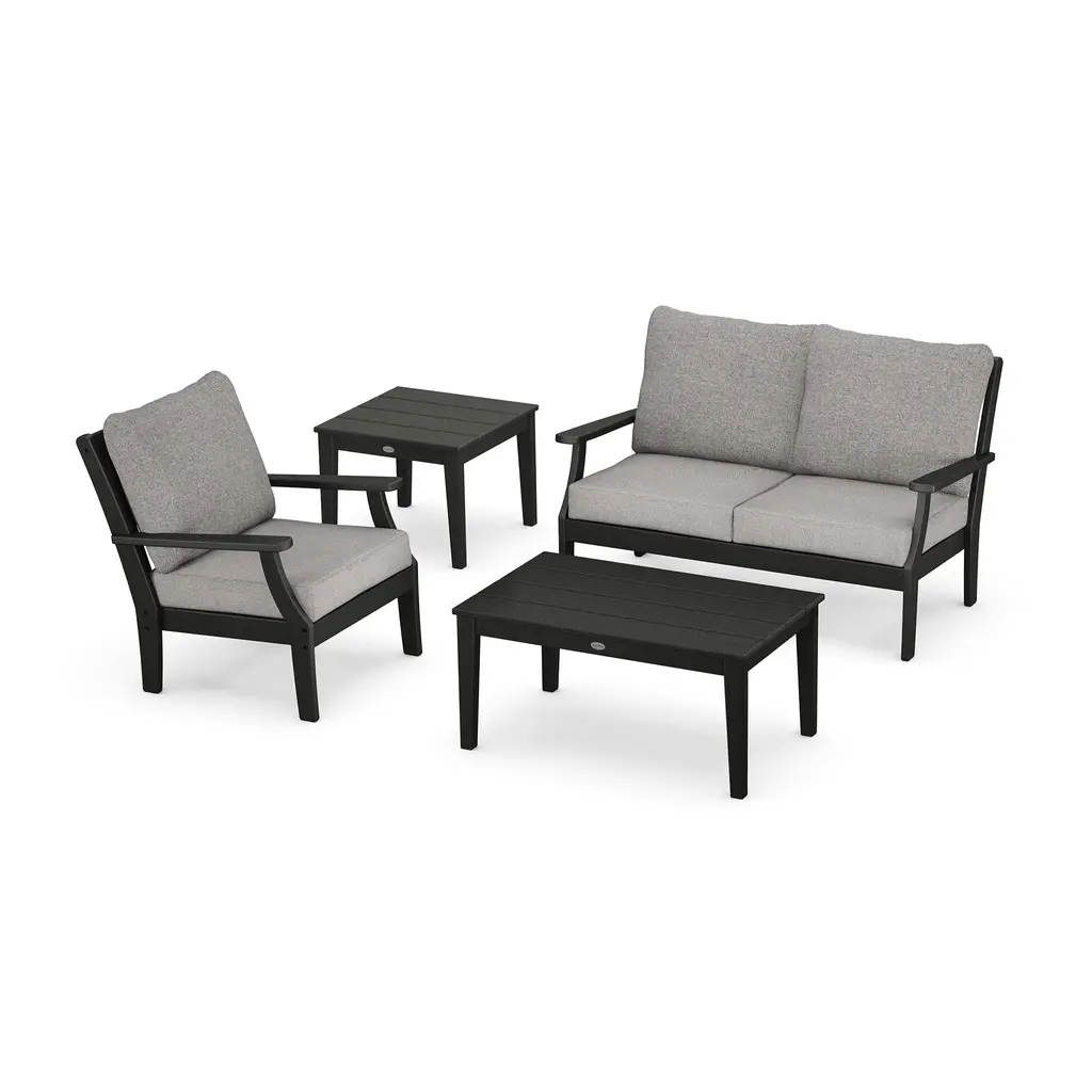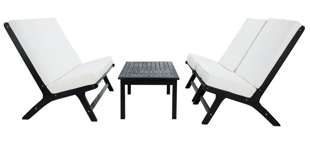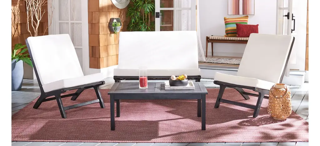 Alive with surf and sand, Sao Paulo's legendary beaches inspired the outdoor living Bishop 4-pc. Patio Set. Crafted of rich natural wood, its clean lines and plush upholstery is ideal for afternoon lounging by the pool. Includes square pillows to provide a complementary color accent.
