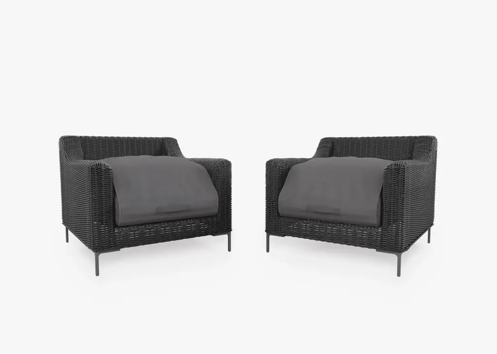 Enjoy indoor comfort outside. Beautifully crafted from All-Weather Wicker and designed for durability, Outer’s modular patio furniture invites you to relax on luxuriously comfortable memory foam cushions. The built-in, easy to use OuterShell® cover protects the cushions when not in use, and features Velcro that secures it in place and a handle for convenient transport and storage. Includes 2 armchairs.