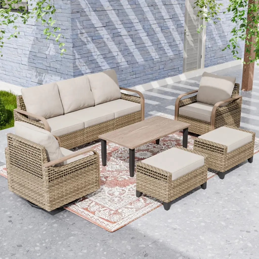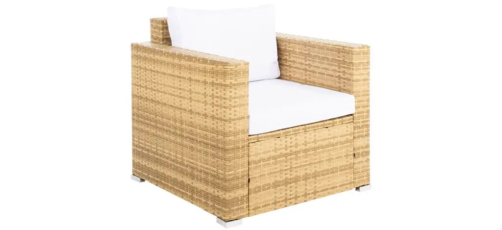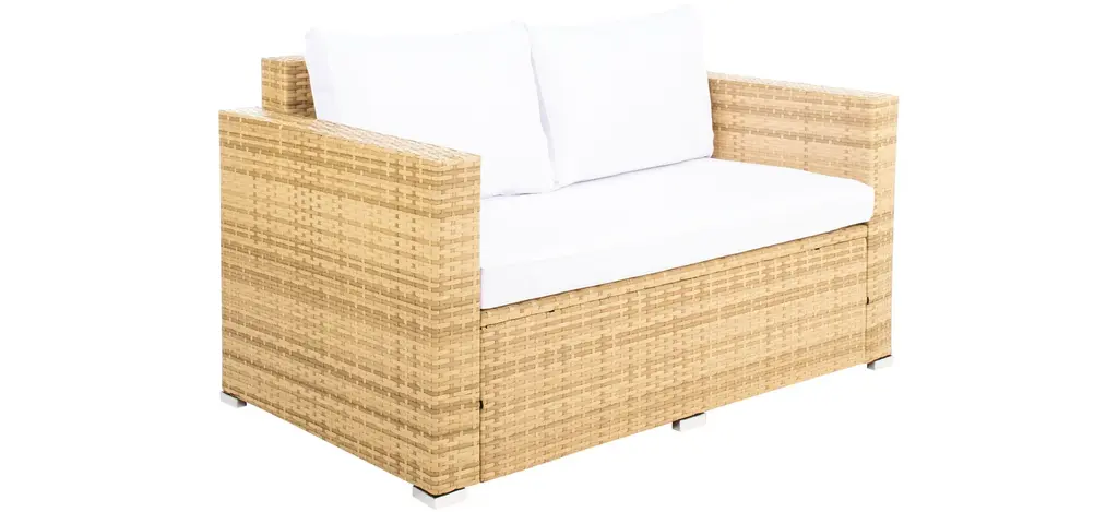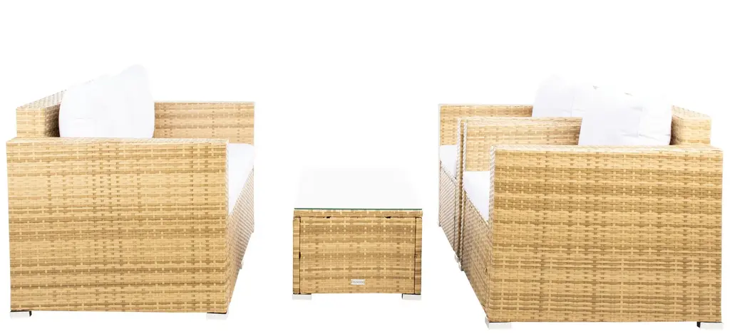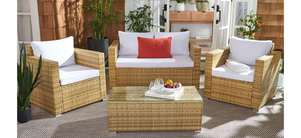 The Brielle 4-pc. Patio Set perfectly pairs clean lined geometry with rich, flowing texture, elevating your outdoor decor to new heights of sophistication. Brielle's woven frames are beautifully juxtaposed with plush cushions, and its glass topped coffee table provides ample room for drinks or tapas.