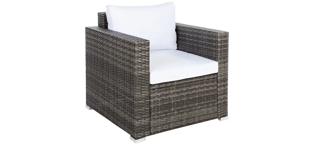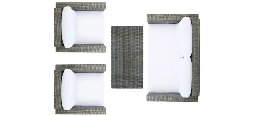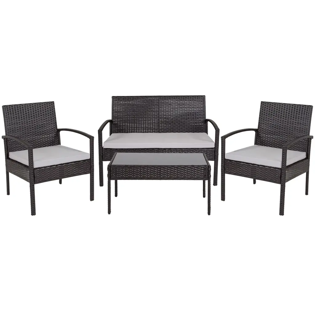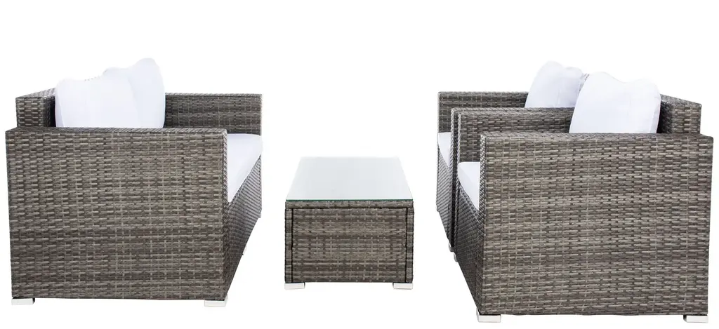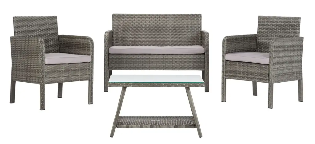 The Brielle 4-pc. Patio Set perfectly pairs clean lined geometry with rich, flowing texture, elevating your outdoor decor to new heights of sophistication. Brielle's woven frames are beautifully juxtaposed with plush cushions, and its glass topped coffee table provides ample room for drinks or tapas.