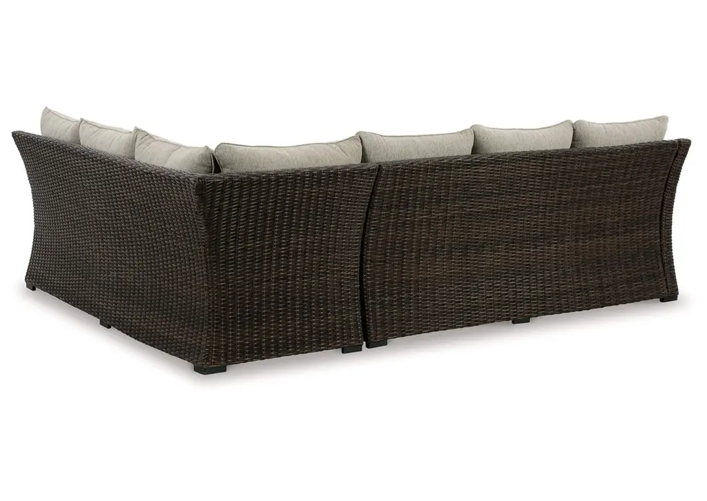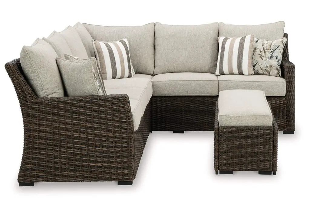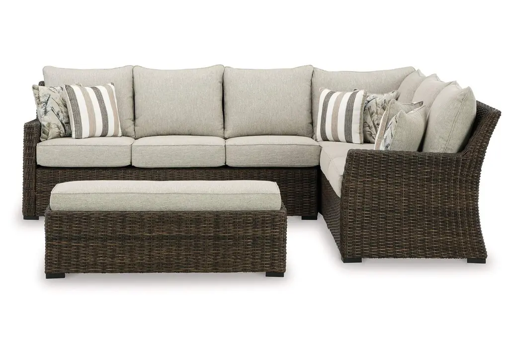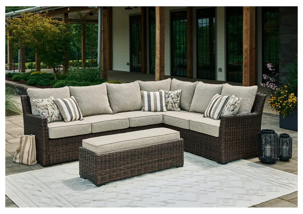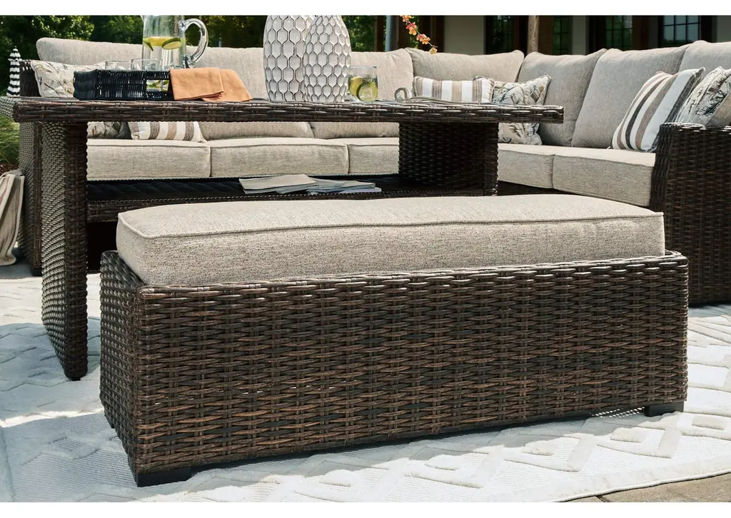 Relax. Refresh. Refine your outdoor oasis. The Brook Ranch sofa sectional and bench master high style with beautiful simplicity. High-performance fabric, warmly neutral hues and all-weather durability invite everyday use. From getting sun-kissed in the summer to chilling with cocoa in the winter, their cushioned comfort makes outdoor living all the more enticing. Weight 232.000 lbs. (104.4kgs.)