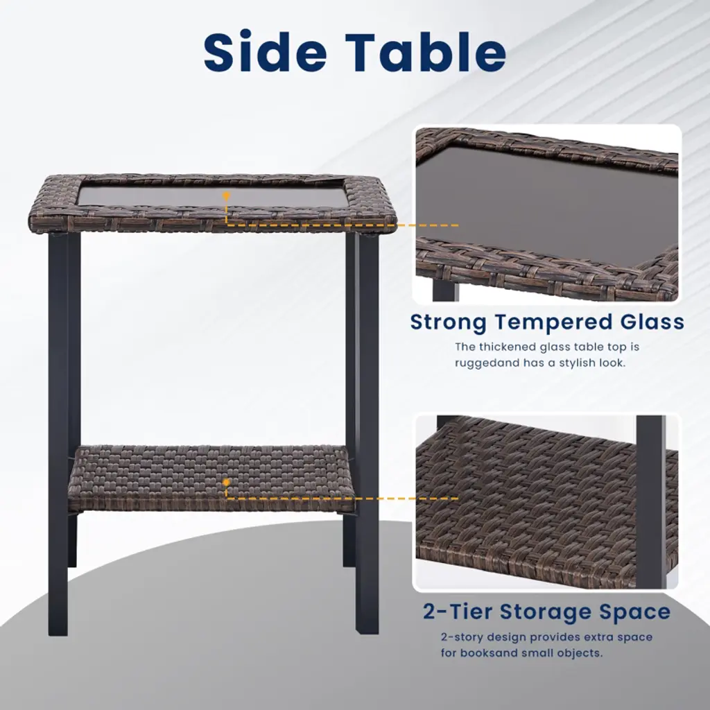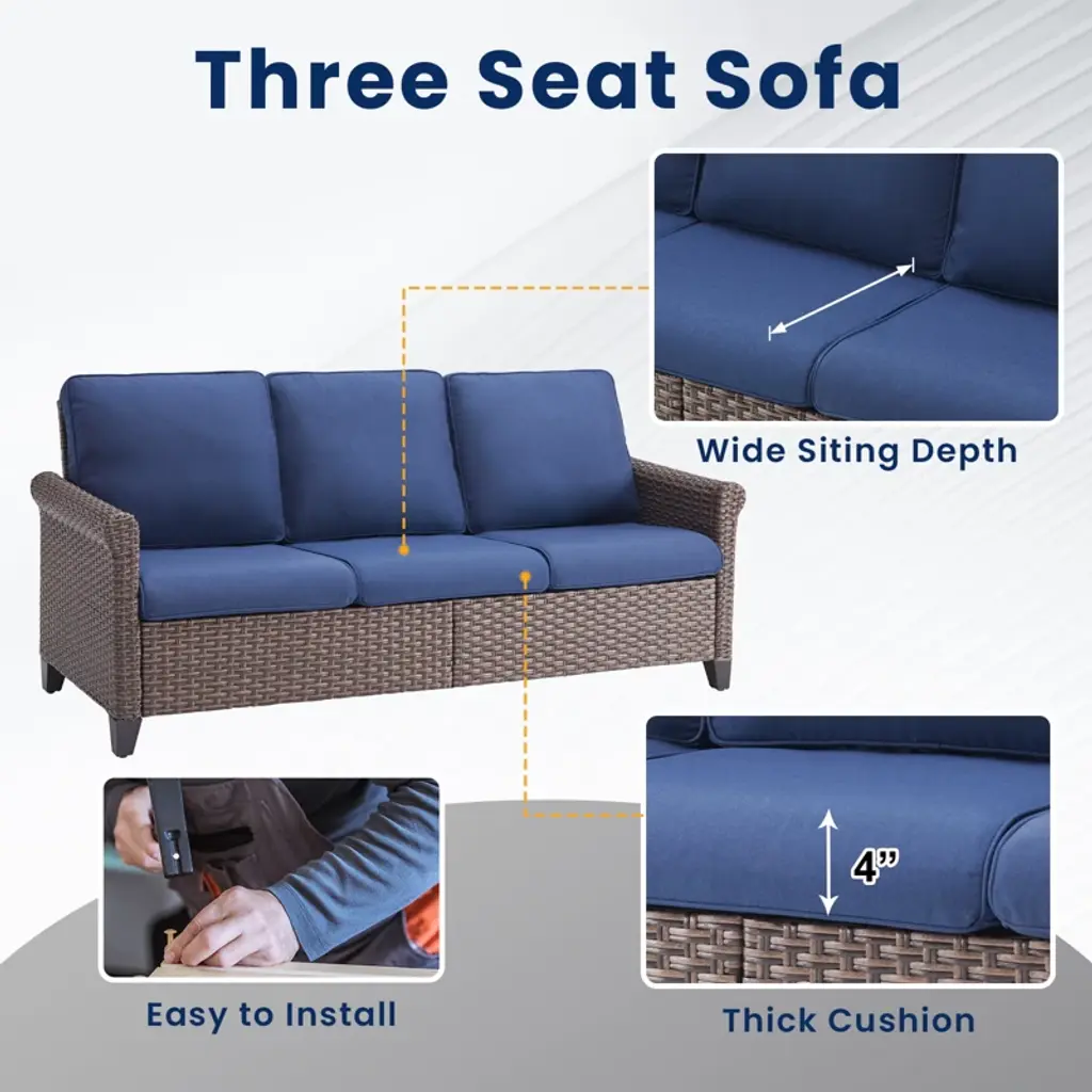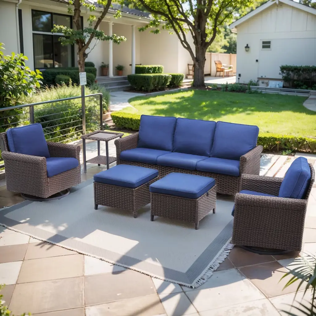 Elevate your outdoor living space with our 5-Piece Outdoor Furniture Set, featuring a sofa, two swivel chairs, two ottomans, and a coffee table. Perfectly designed for patios, gardens, or balconies, this set offers an elegant yet functional solution for lounging, entertaining, and relaxing outdoors. Crafted with handwoven wicker and supported by a powder-coated steel frame, this set combines style with exceptional durability. The weather-resistant cushions, made from Olefin fabric, are designed to resist fading, mildew, and wear, ensuring long-lasting comfort and beauty for your outdoor space. The swivel chairs offer smooth 360-degree rotation, allowing you to enjoy the outdoors from every angle, while the ottomans can be used as footrests, extra seating, or even as a side table for drinks and snacks. The spacious sofa provides ample seating for relaxation, while the coffee table is perfect for holding drinks, books, or decorative items. With its combination of luxury and practicality, this set is the perfect addition to your outdoor retreat, offering a versatile, low-maintenance solution that enhances the comfort and style of your space.