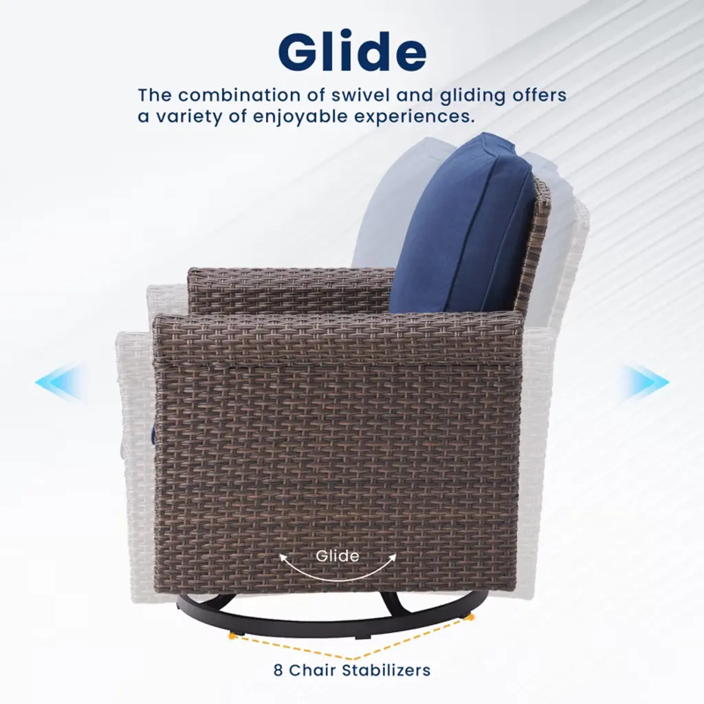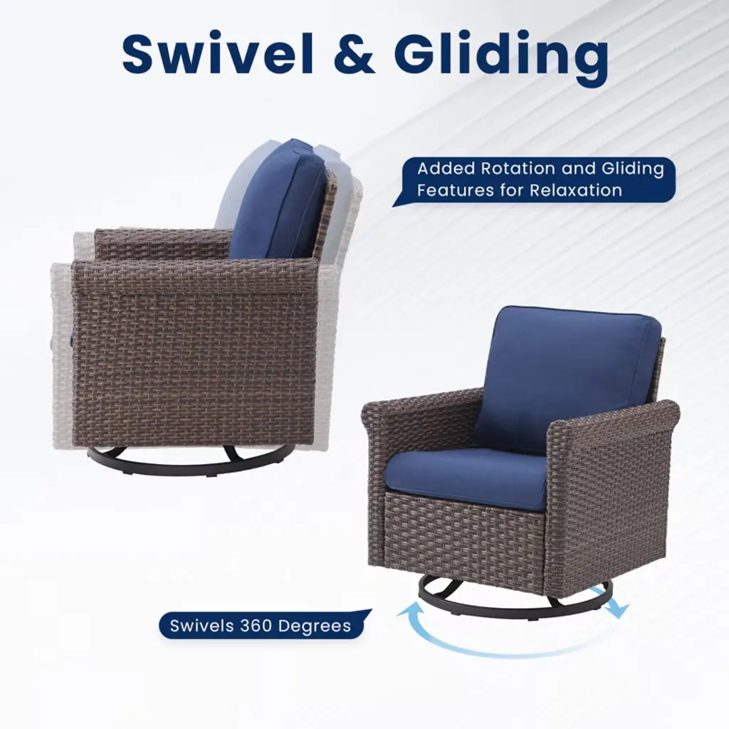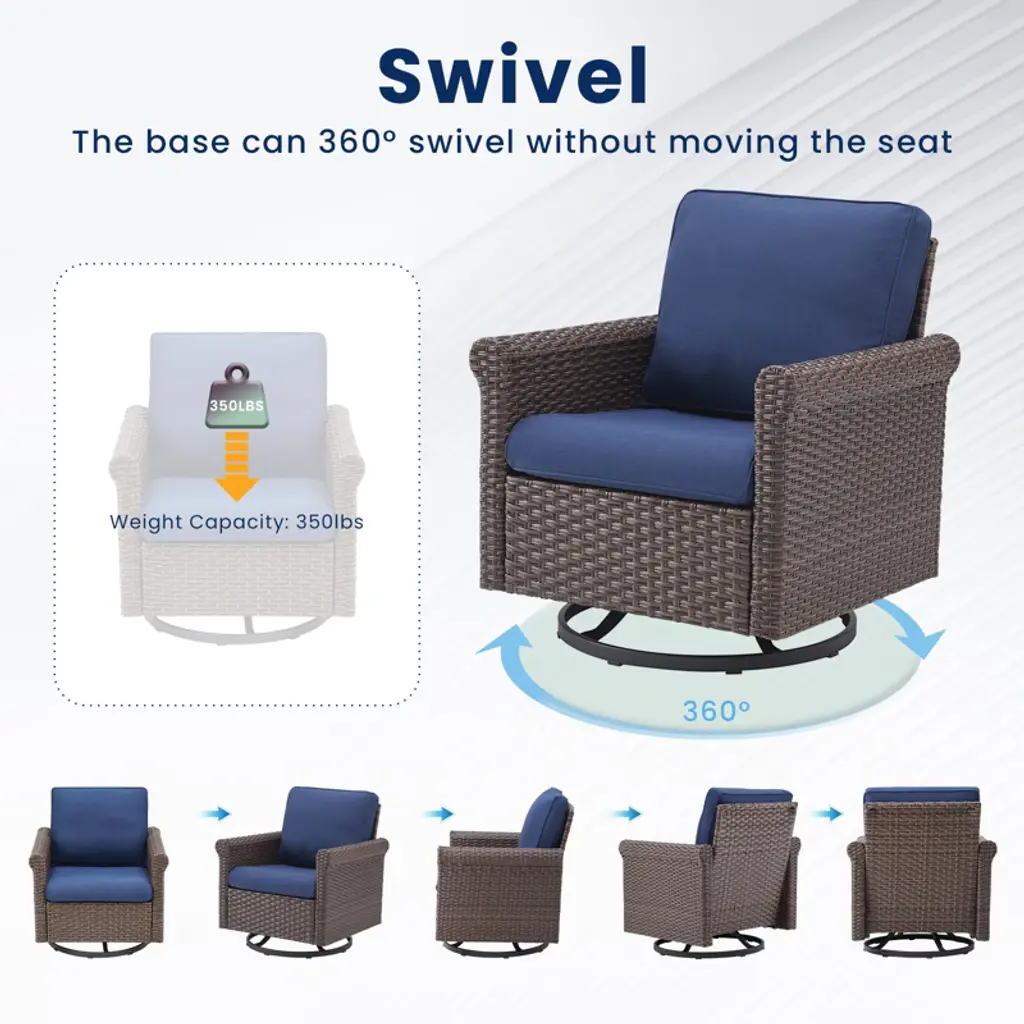 Buenhomino 5-piece Outdoor Set – Sofa, 2 Swivel Chairs, 2 Ottomans & Table, Handwoven Wicker, Weather-resistant Cushions For Patio