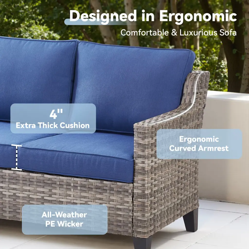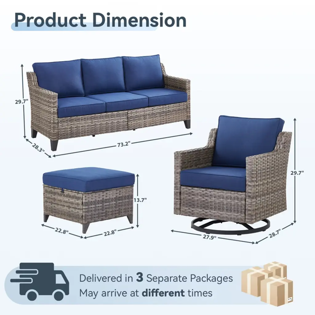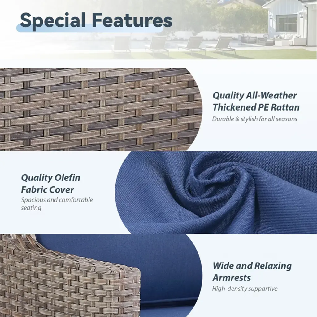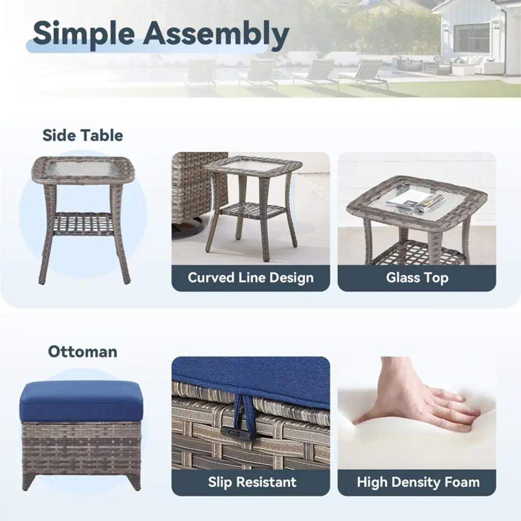 Elevate your outdoor living with the Buenhomino 5-Piece Patio Set. This stylish rattan wicker conversation set includes a deep-seating sofa, two 360° swivel glider chairs, and two multi-use ottomans. Designed for ultimate comfort and durability with thick, plush cushions and all-weather PE wicker, it's the perfect centerpiece for your garden, patio, or poolside.