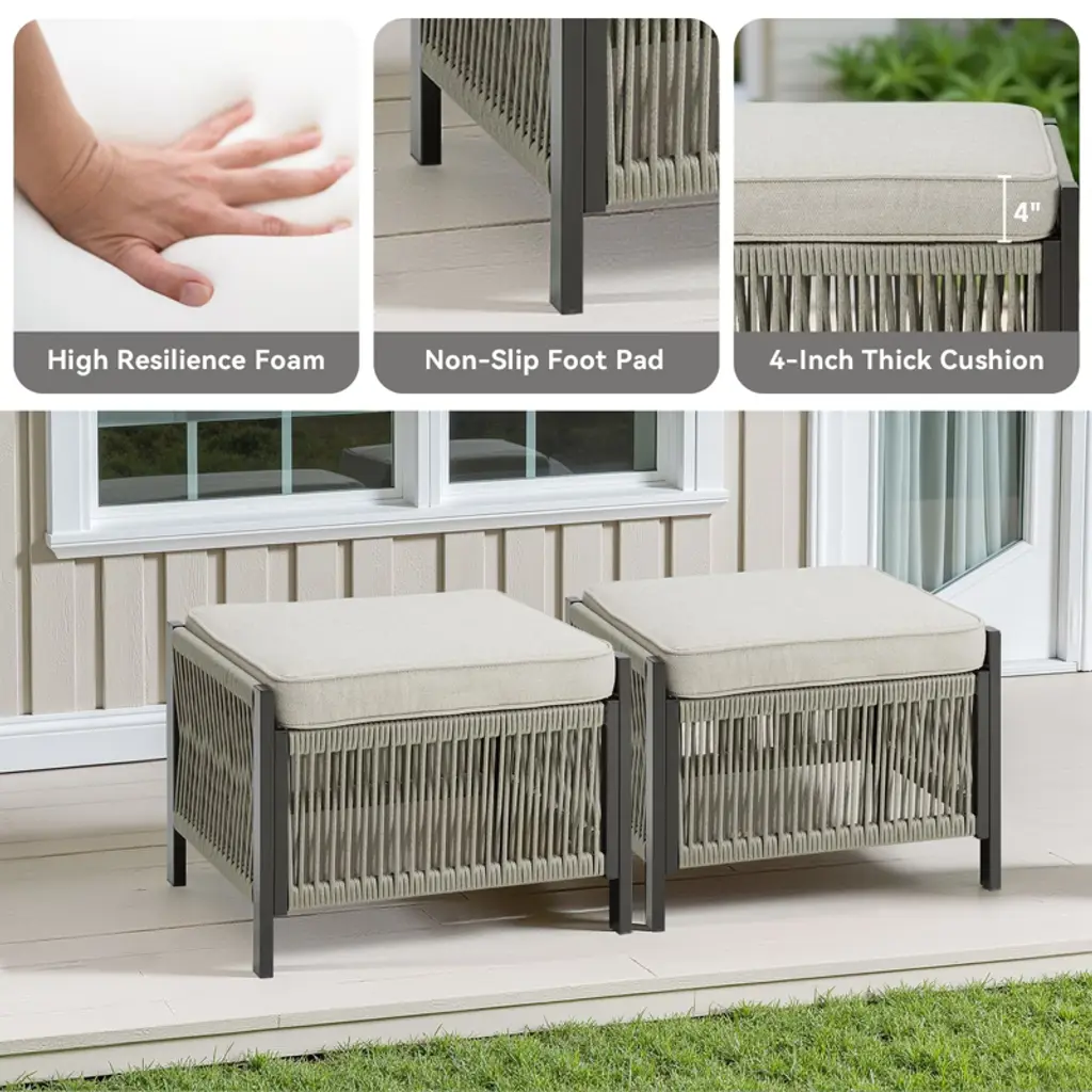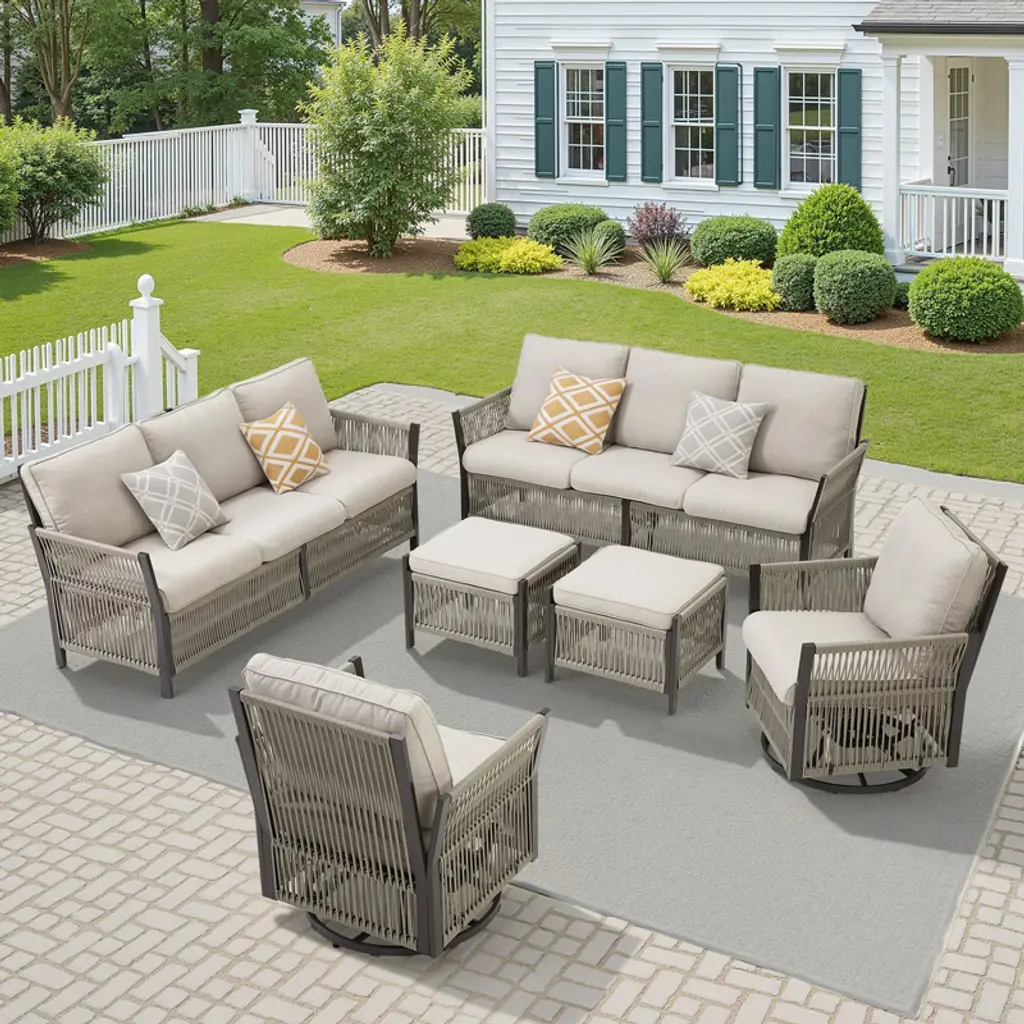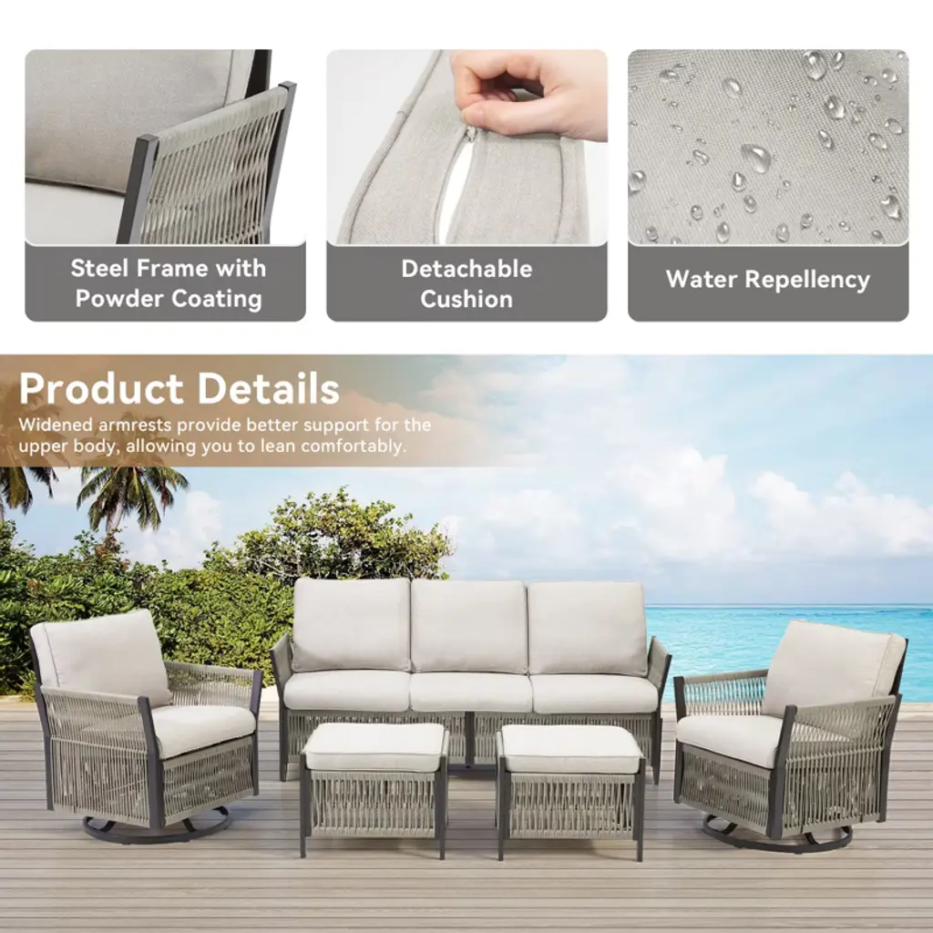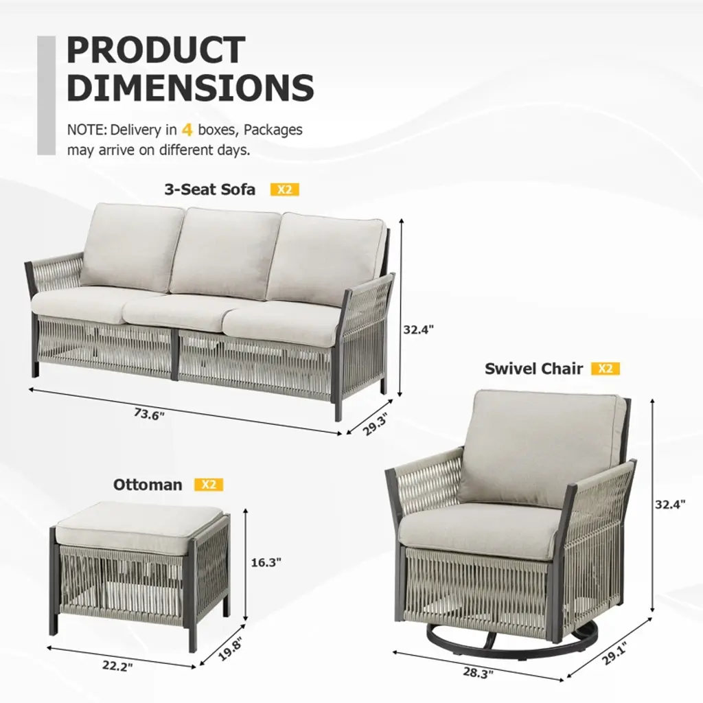 Buenhomino 6-piece Outdoor Resin Wicker Set – 2 Sofas, 2 Swivel Chairs & 2 Ottomans With Uv-resistant Cushions & Steel Frame Beige
