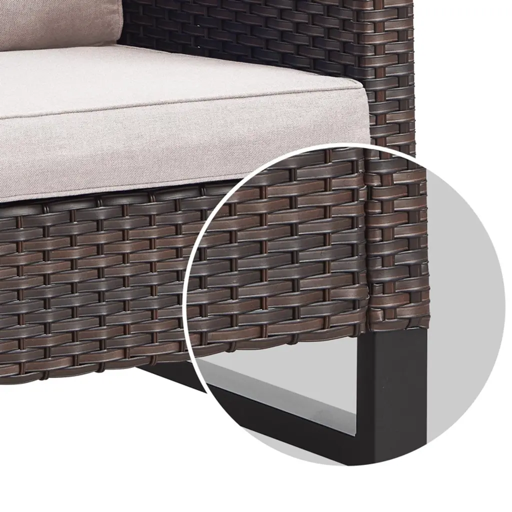 Buenhomino L-shaped Patio Furniture Set, All Weather Wicker Outdoor Sectional Sofa Conversation Set With High Back,thick Beige Cushion,brown Wicker