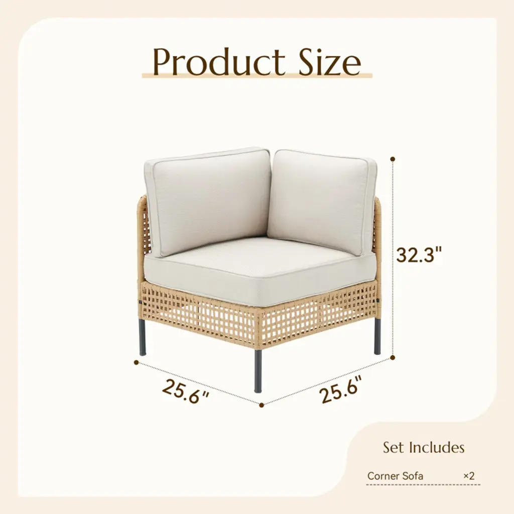 Decorate your outdoor space with this upscale and sophisticated modular sectional sofa! Sturdy and durable powder coated iron frame with delicate double sided rattan finish provides a stylish and minimalist look with great stability. The rattan is not easy to crack and is UV and weather resistant, maintaining a perfect look even after years of use.