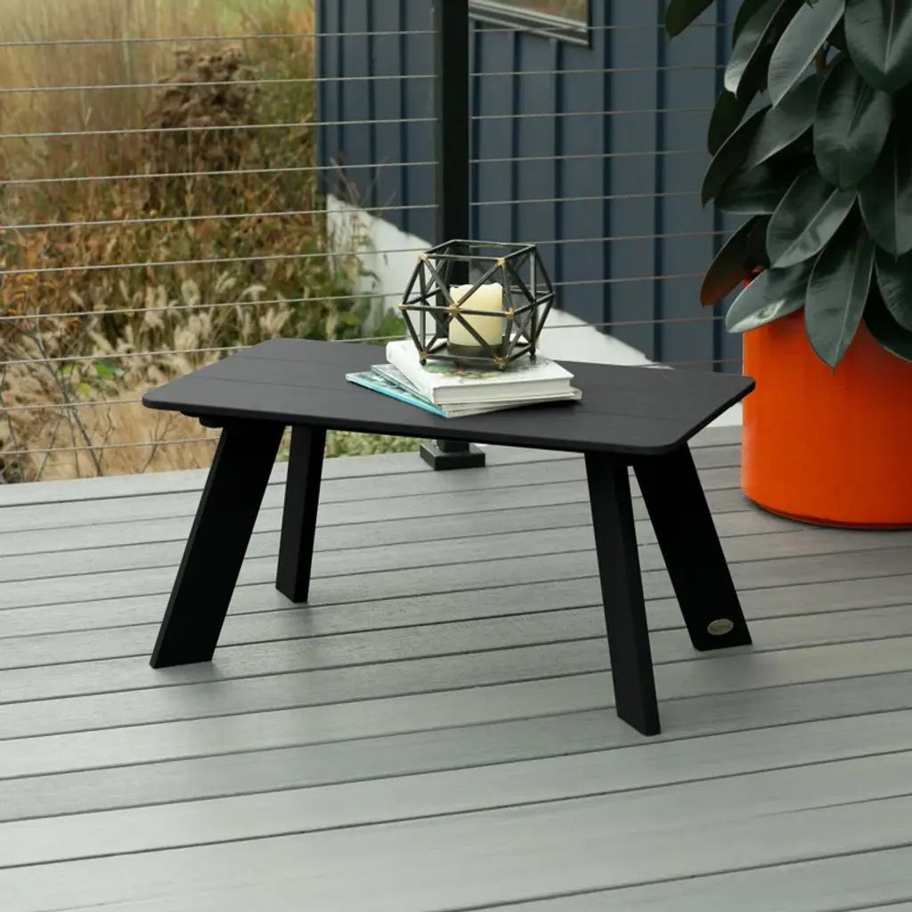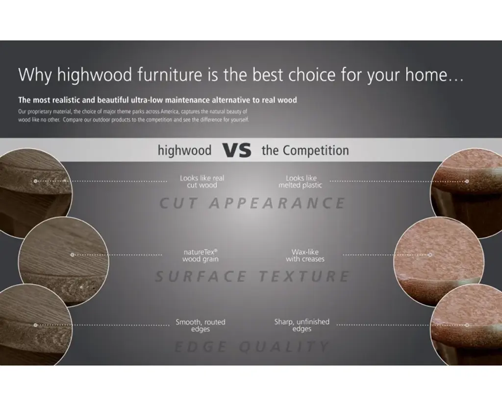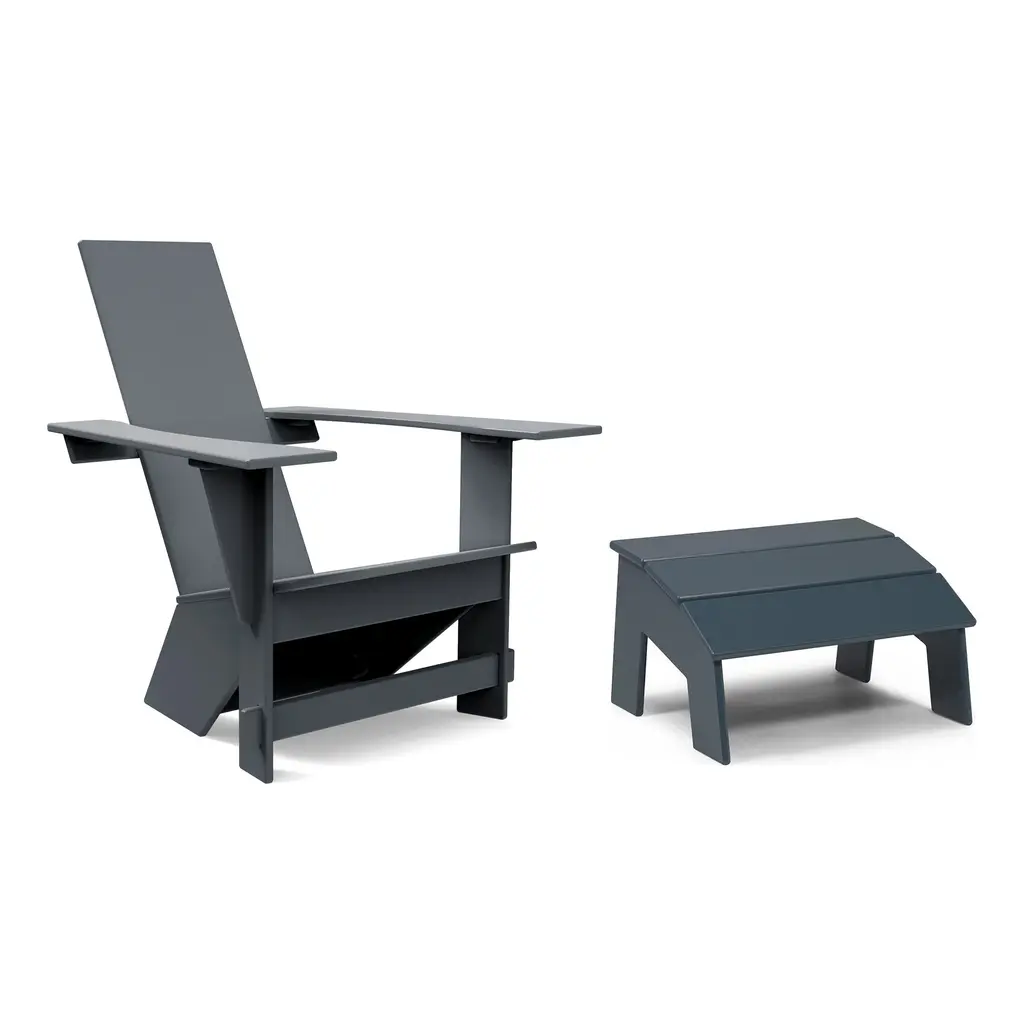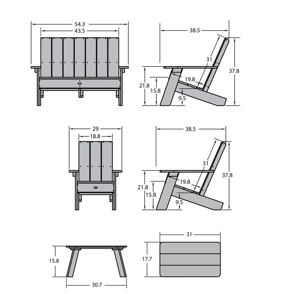 The greater outdoors. This set includes two armchairs + a loveseat with laid-back Adirondack silhouettes that evoke evening bonfires, plus a table to hold the s’mores supplies. They’re made in the USA from weather-resistant resin that mimics the look of wood but stands up to the elements year-round.