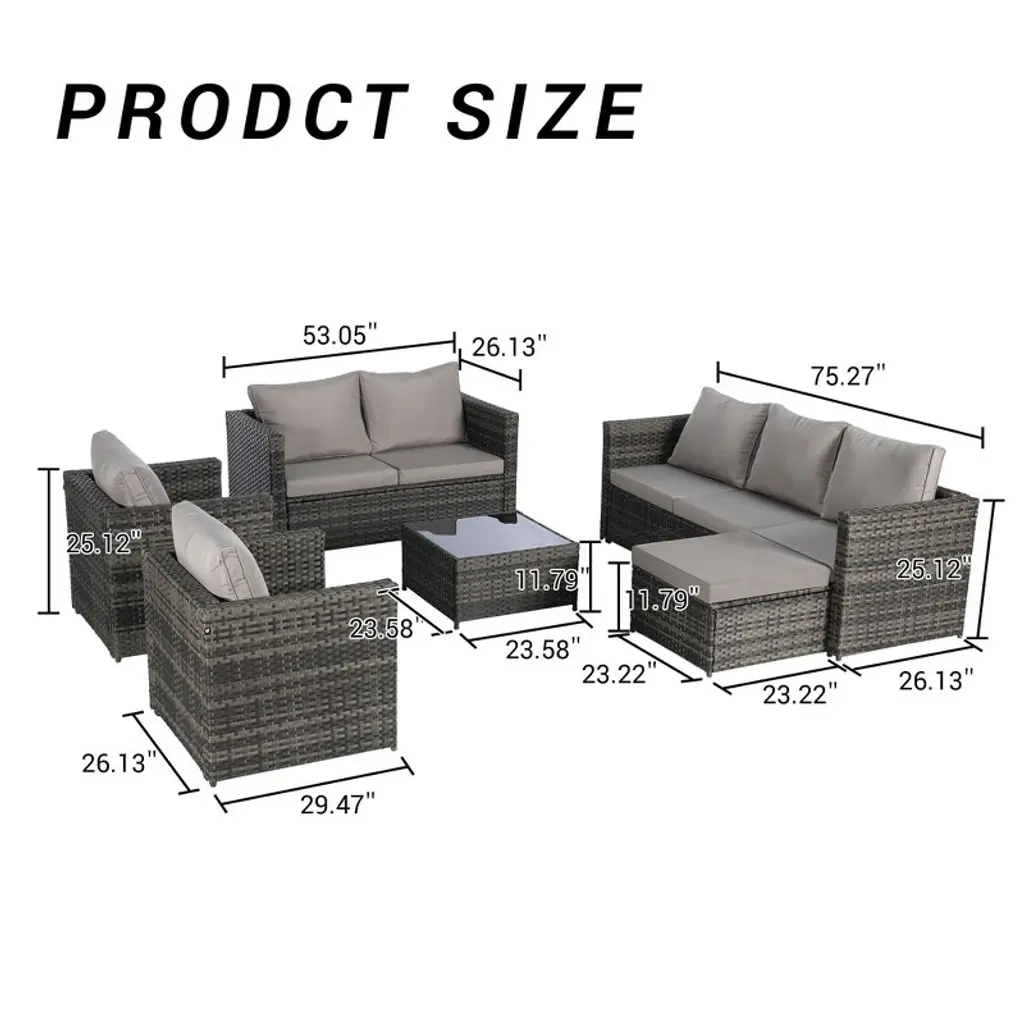 Cavinas 4-piece Patio Outdoor Seating Sets With Tempered Glass Table, Patio Conversation Set Deep Seating With Thick Cushion, Gray
