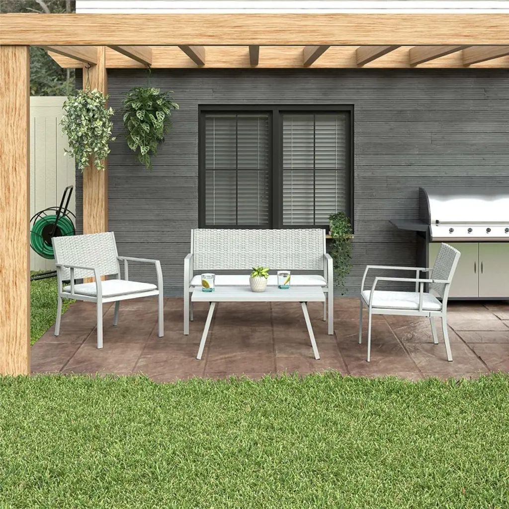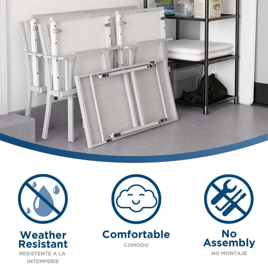 The COSCO 4-Piece Folding Conversation Set is the perfect blend of style and convenience for your outdoor space. This set is weather resistant, ensuring long-lasting durability through all seasons. Designed with your comfort in mind, it features accent cushions that make lounging a delight. Best of all, there's no assembly required – it's ready to use right out of the box, saving you time and effort. The set is also easy to store, folding up effortlessly for compact storage, making it wonderful for apartment dwellers or those with limited storage space. You can put it away for the winter or bring it inside if inclement weather is expected, ensuring it stays in great condition year-round. With its modern design in a sleek gray color, this conversation set will complement any décor, transforming your patio or balcony into a relaxing retreat.