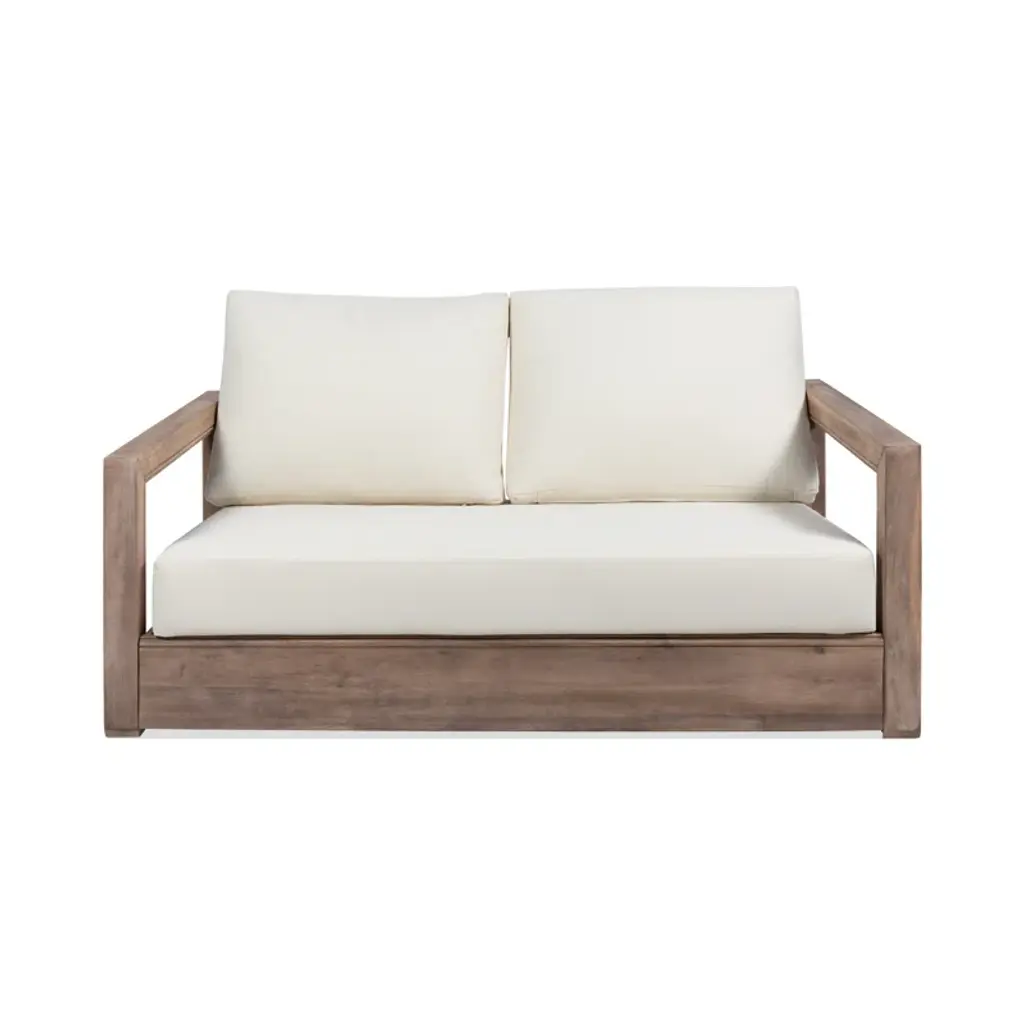 Transform your backyard or poolside patio into an outdoor oasis with this 4-person conversation set. Each piece is crafted from naturally weather-resistant acacia wood, and the streamlined seats feature a legless design for a minimalist spin. We especially love how the table has a slatted top to promote faster drying after those inevitable sunshowers. Ready to soak up some sunshine? This set comes complete with weather-resistant cushions for all-day lounging. Plus, the covers are removable and machine-washable to make cleaning a breeze.
