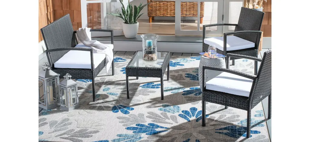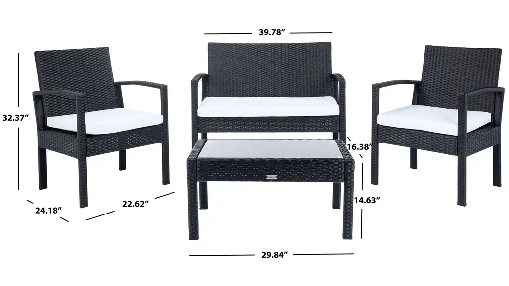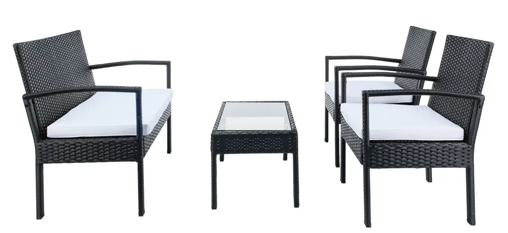 Designed to bring a tropical resort vibe to your porch or patio, the Duke 4-pc. Patio Set is extravagant staycation outdoor decor. Duke complements any taste or style with its woven frames and plush cushions. Its glass topped coffee table is ideal for holding candles, drinks, or canapes as you relax the day away.