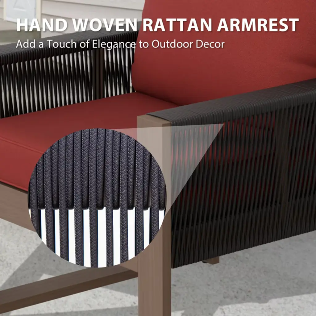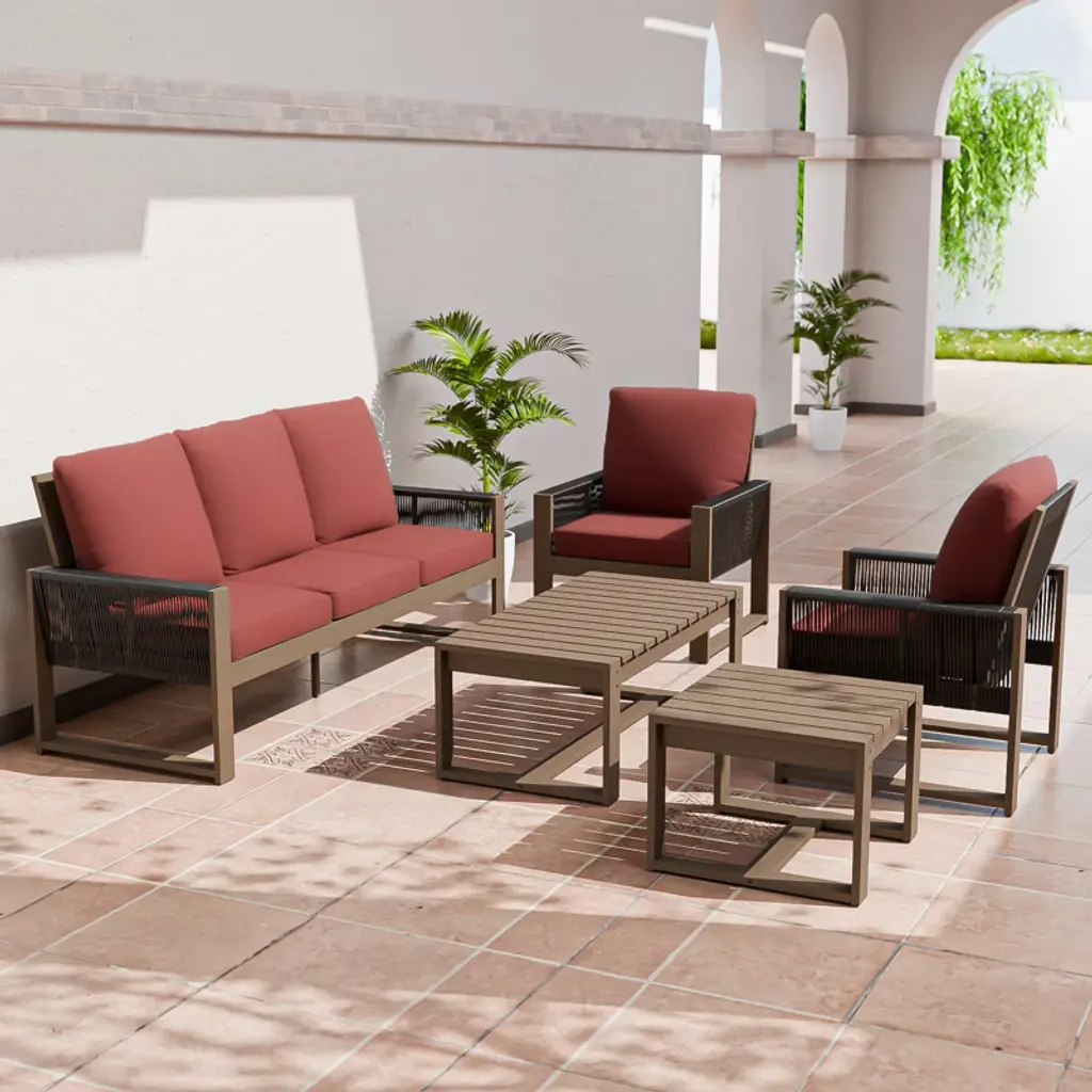 Eagle Peak 5 Pieces Natural Cedar Wood Conversation Set, Outdoor Patio Furniture With Coffee Table And Side Table , Red