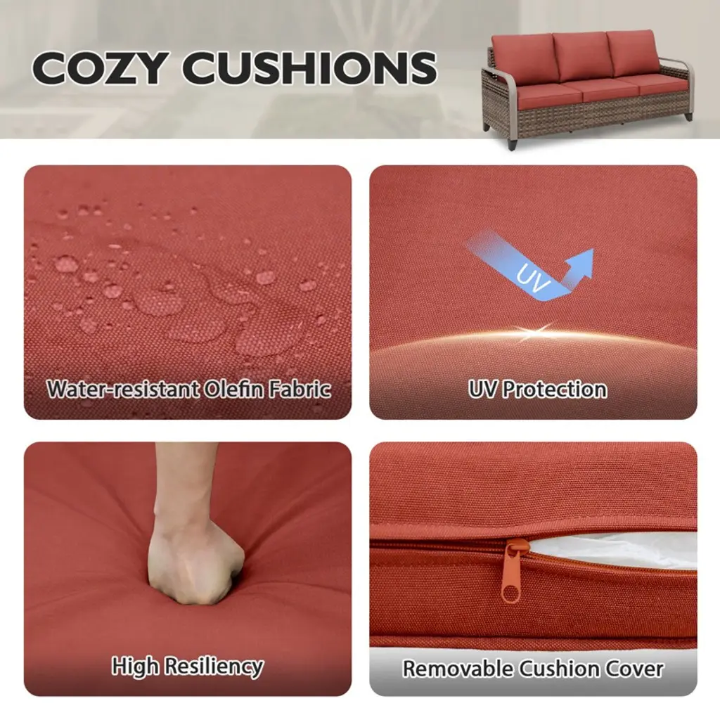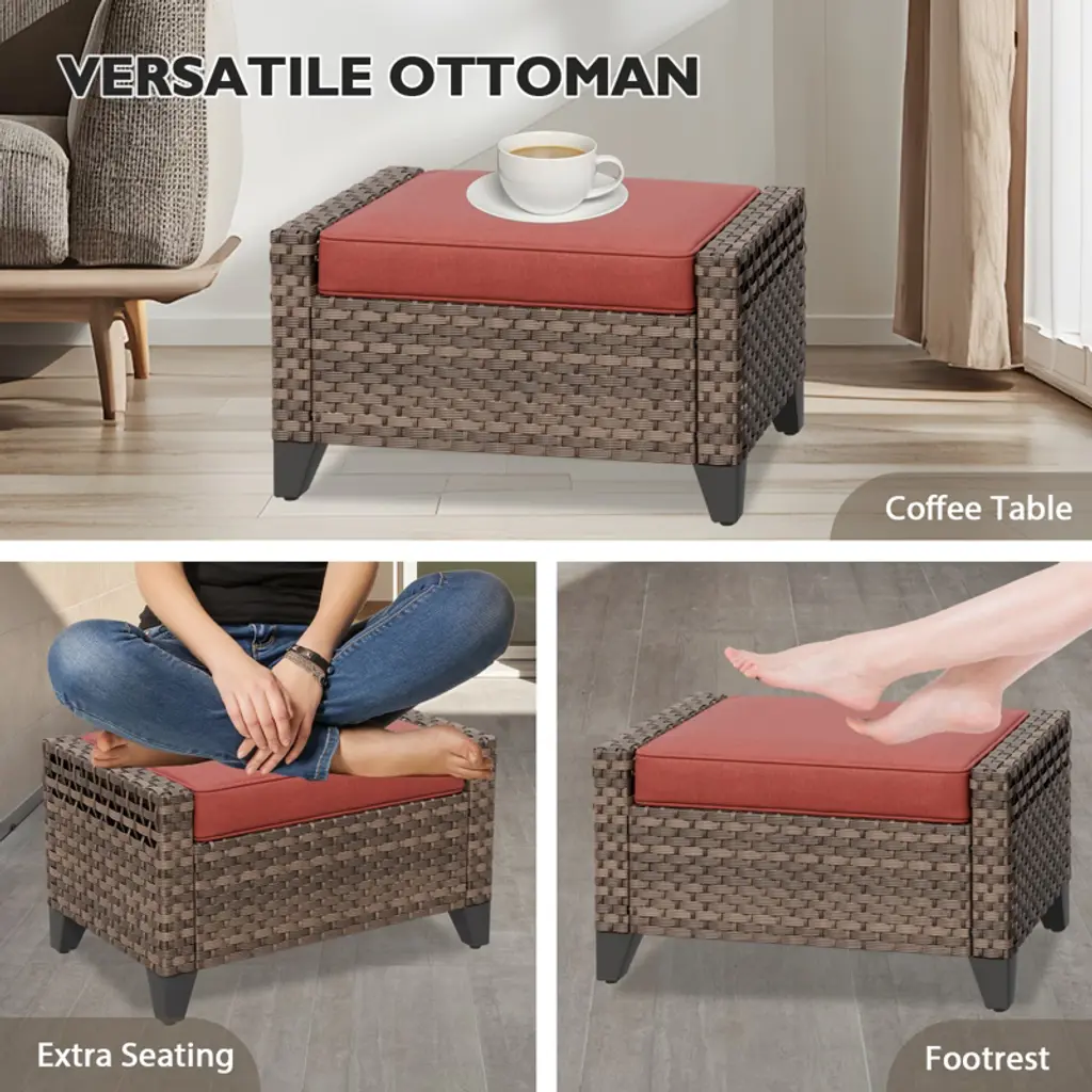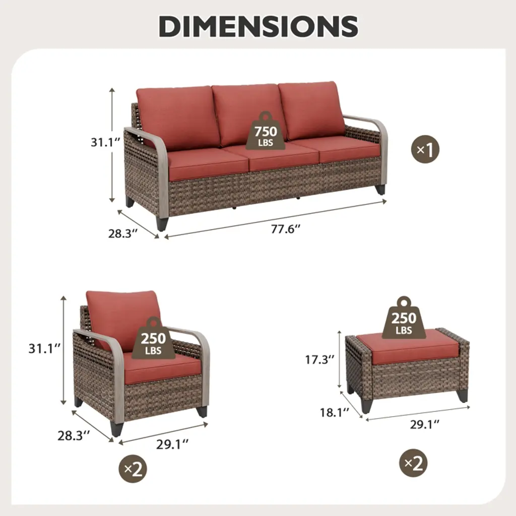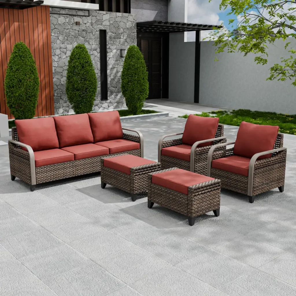 Eagle Peak Wicker Patio Conversation Set, 2 Chairs, 3-seat Loveseat And 2 Ottomans, 5 Pieces, Brown/red